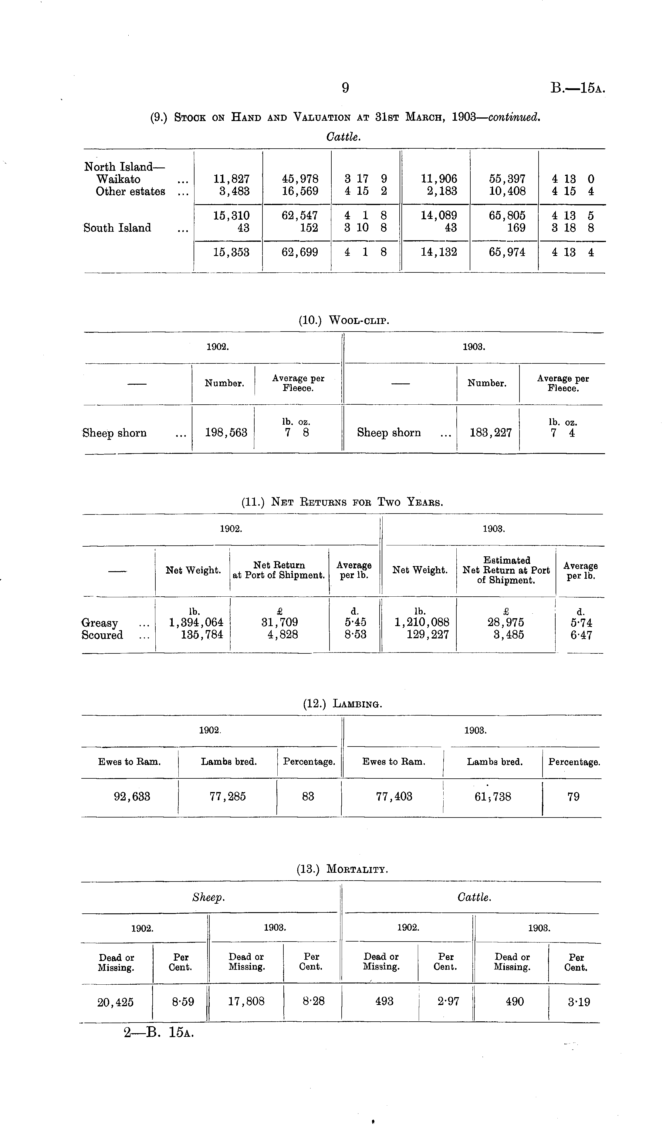 1902. 1903. Number. I Average per Fleece. Number. Average per Fleece. Sheep shorn 198,563 lb. oz. 7 8 Sheep shorn 183,227 lb. oz. 7 4