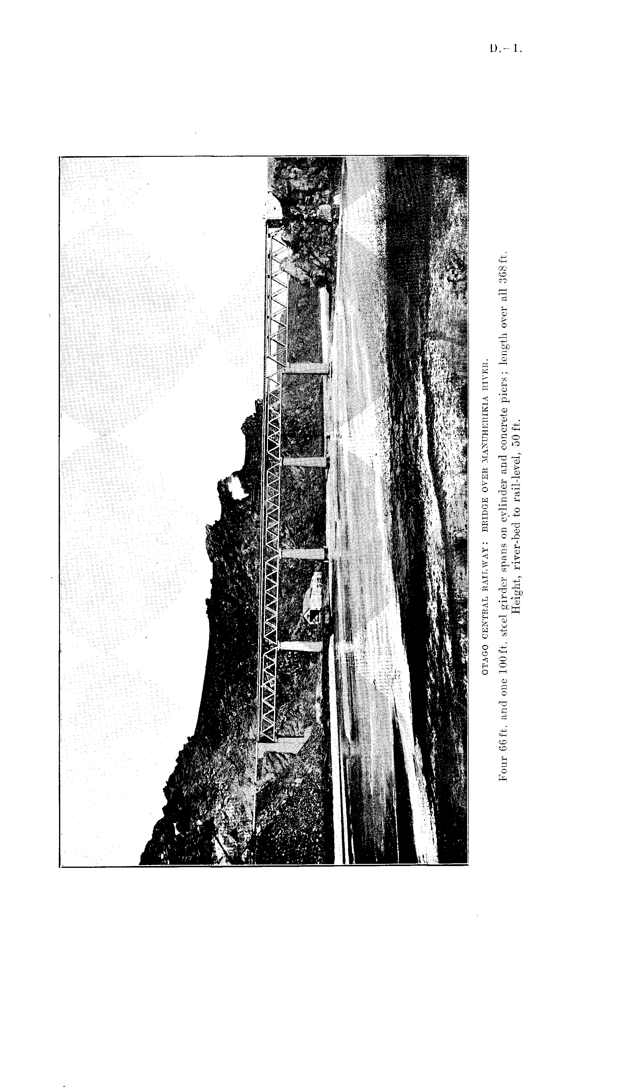 OTAGO CENTRAL RAILWAY: BRIDGE OVER MANUHERIKIA RIVER. Four 66ft. and one 100ft. steel girder spans on cylinder and concrete piers; length over all 368ft. Height, river-bed to rail-level, 50 ft.