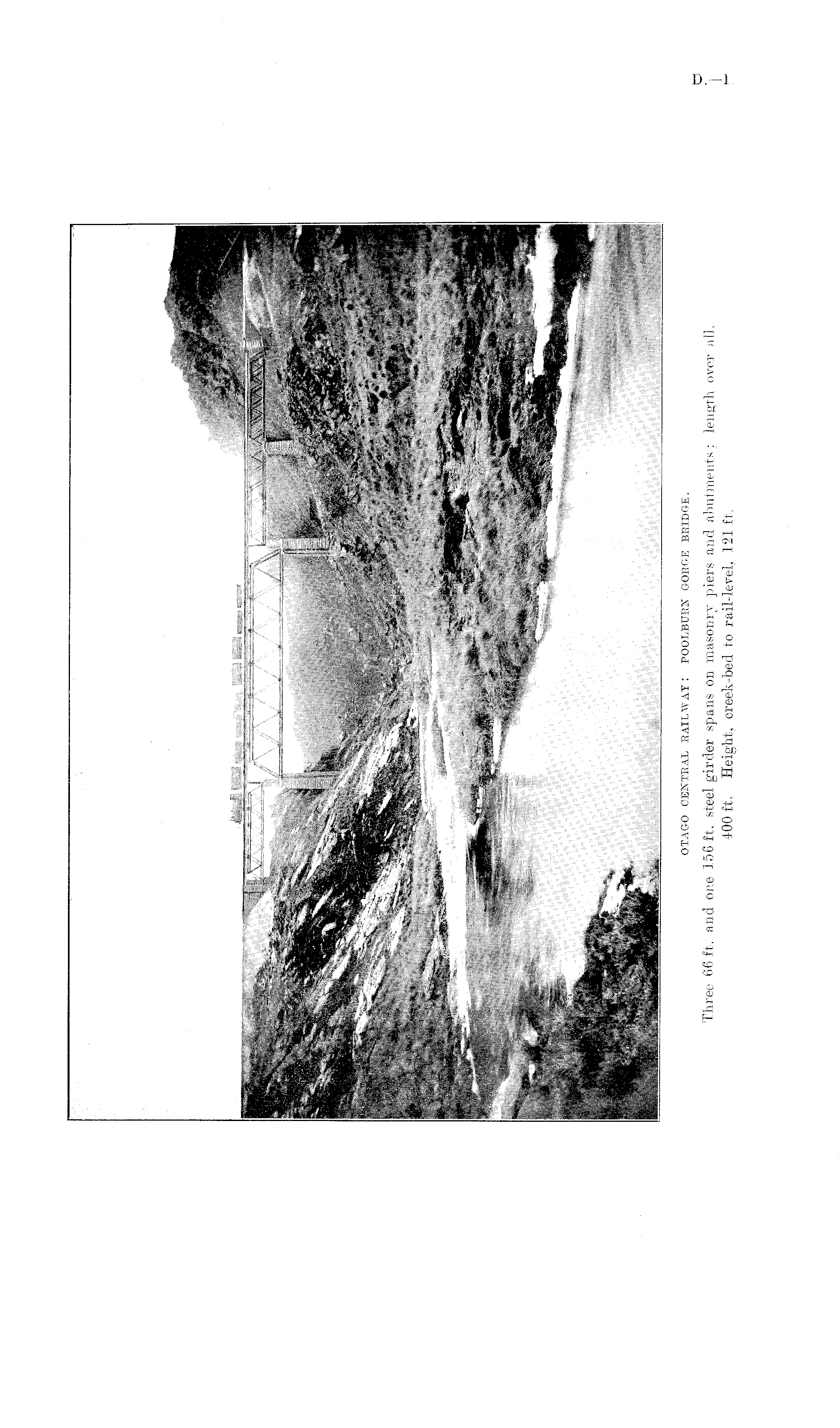OTAGO CENTRAL RAILWAY: POOLBURN GORGE BRIDGE. Three 66ft. and one 156ft. steel girder spans on masonry piers and abutments; length over all, 400 ft. Height, creek-bed to rail-level, 121 ft.