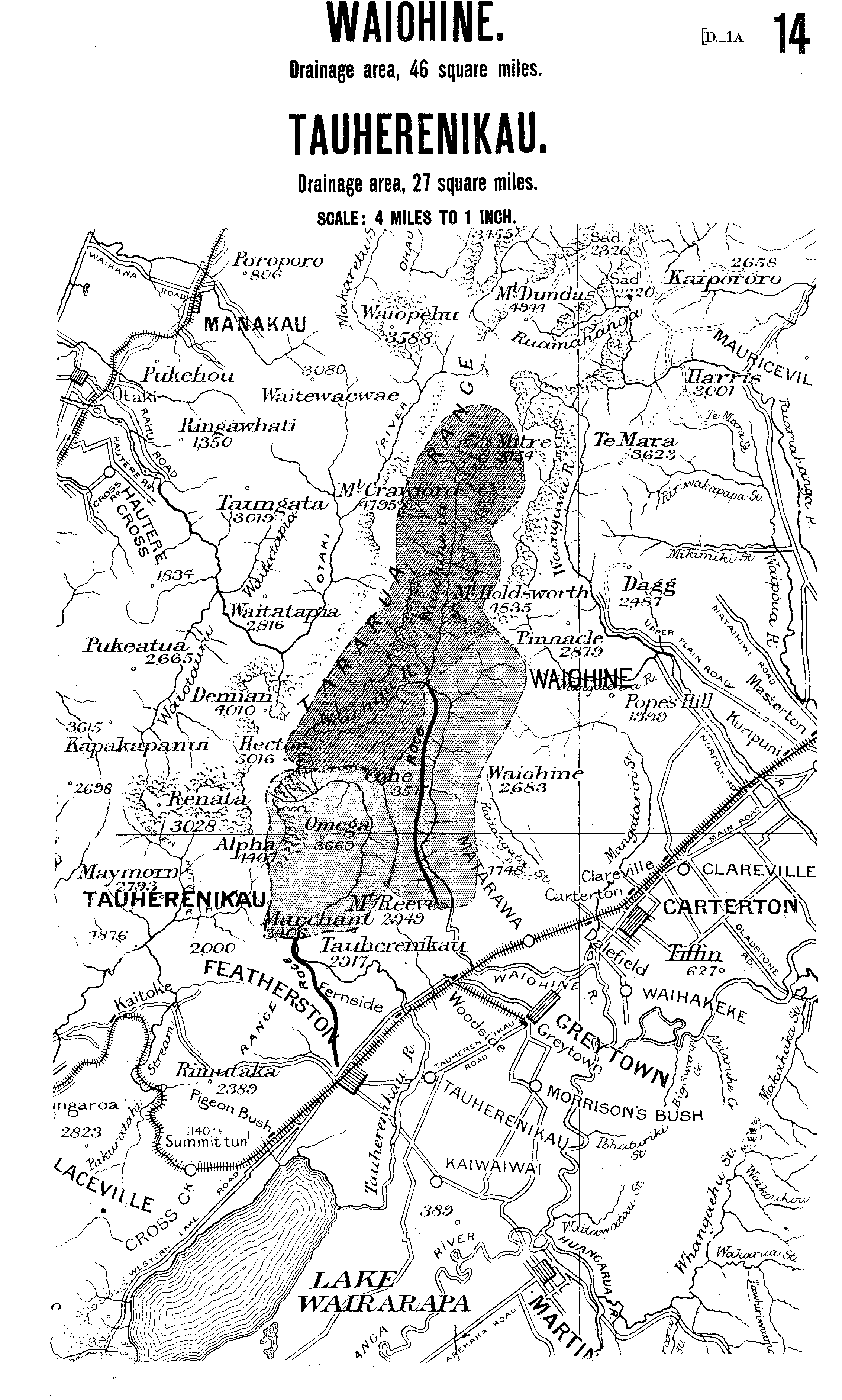 WAIOHINE. Drainage area, 46 square miles. TAUHERENIKAU. Drainage area, 27 square miles.