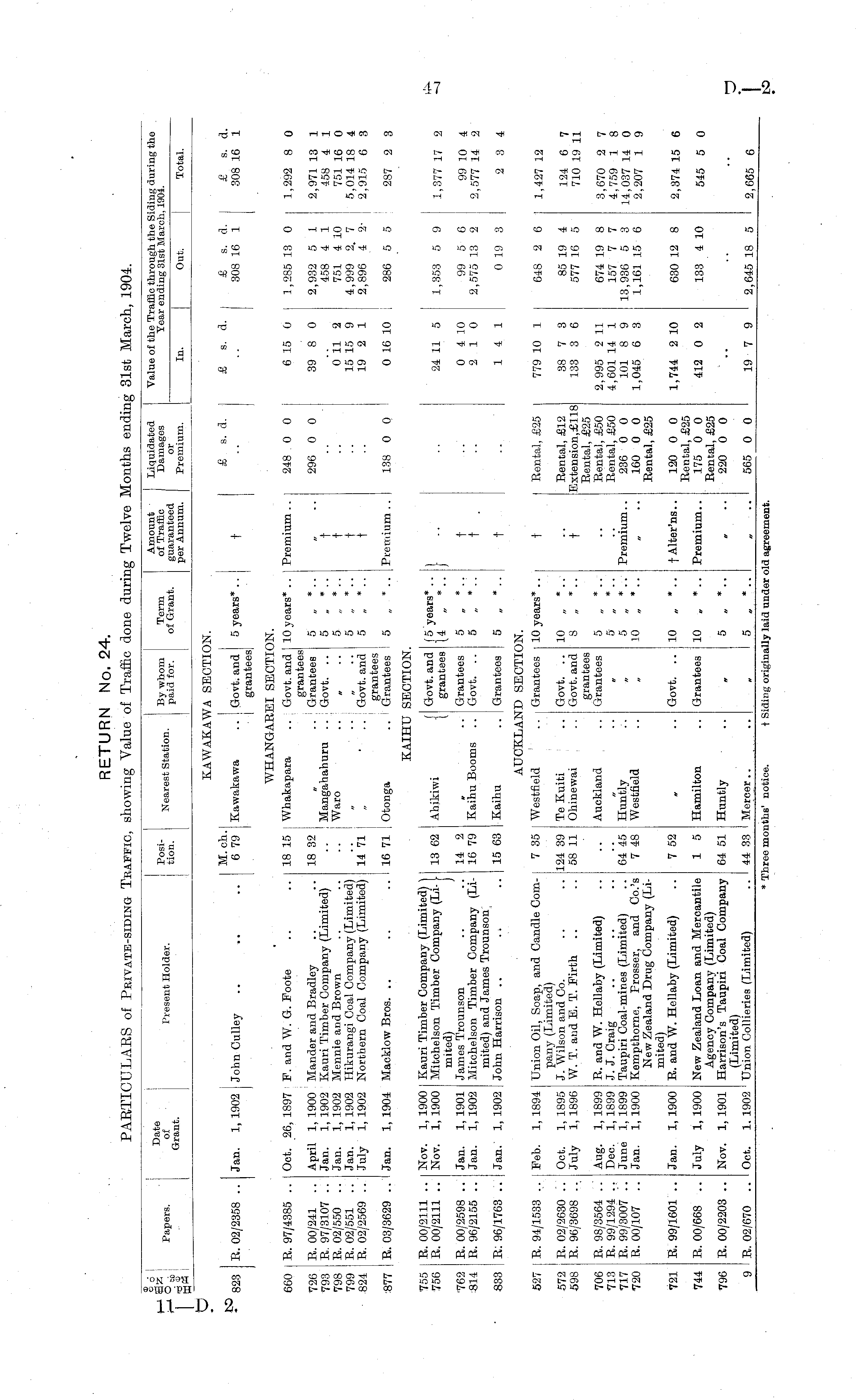 RETURN No. 24. PARTICULARS of Private-siding Traffic, showing Value of Traffic done during Twelve Months ending 31st March, 1904.