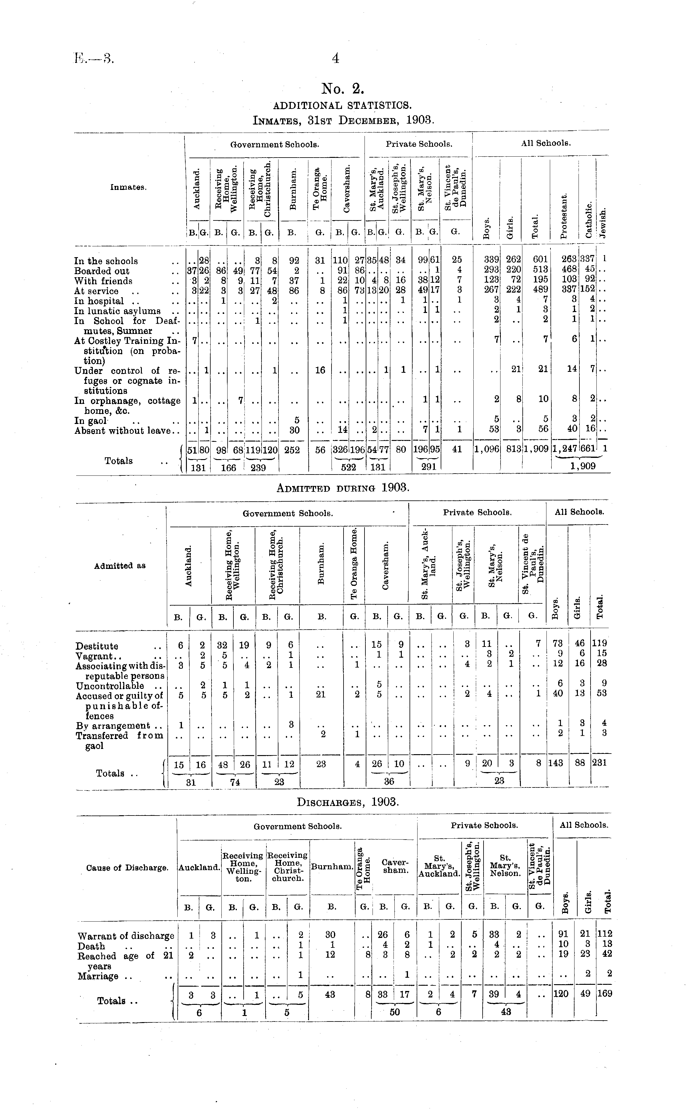 No. 2. ADDITIONAL STATISTICS. Inmates, 31st December, 1903.