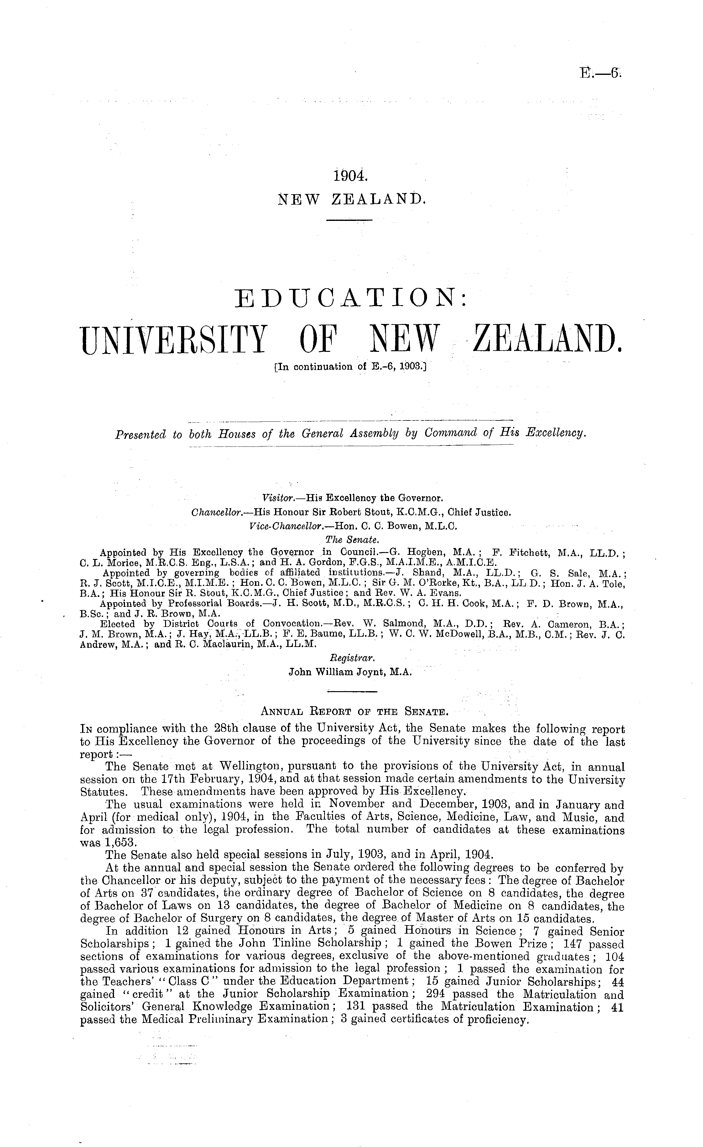 EDUCATION: UNIVERSITY OF NEW ZEALAND. [In continuation of E.-6, 1903.]