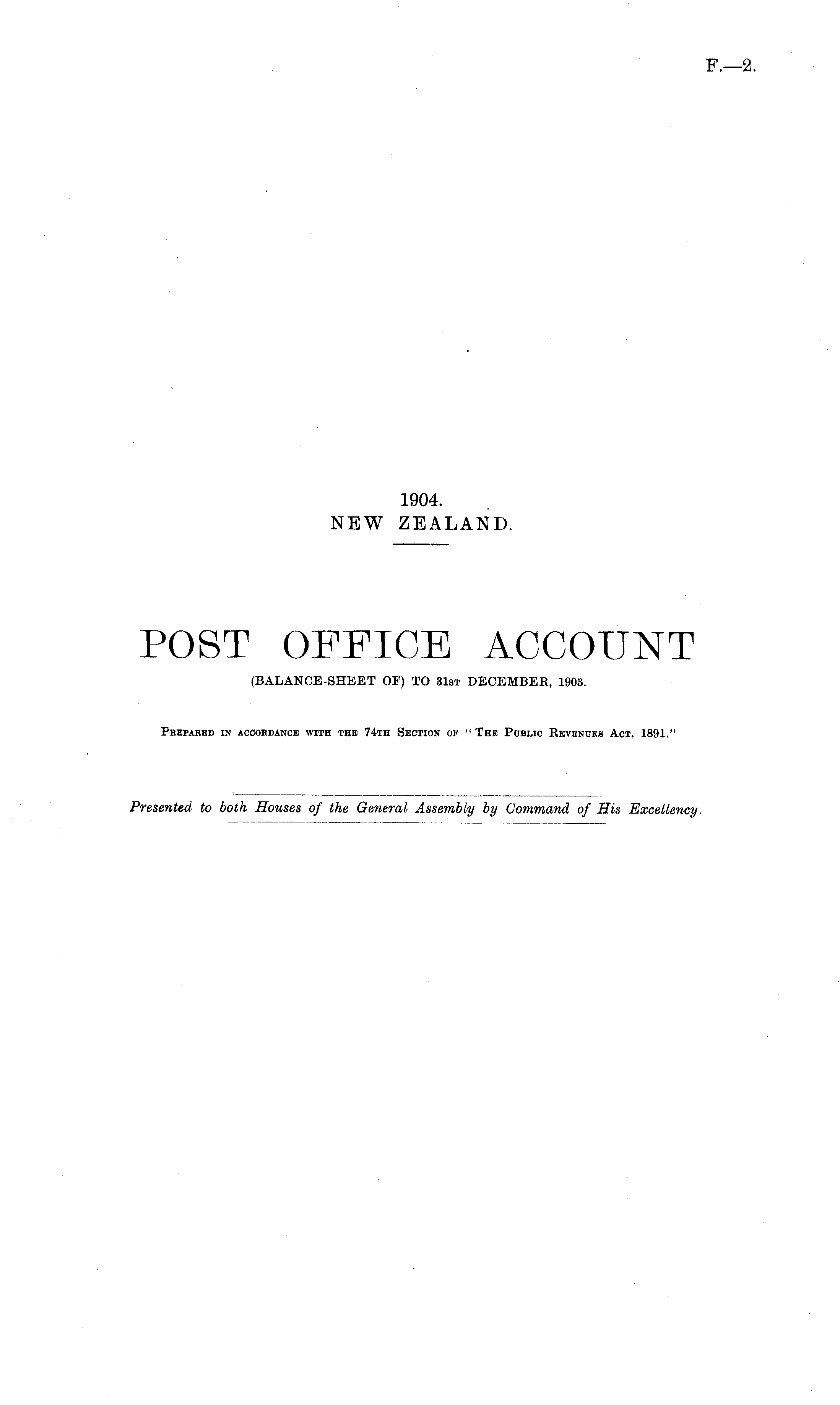 POST OFFICE ACCOUNT (BALANCE-SHEET OF) TO 31st DECEMBER, 1903.