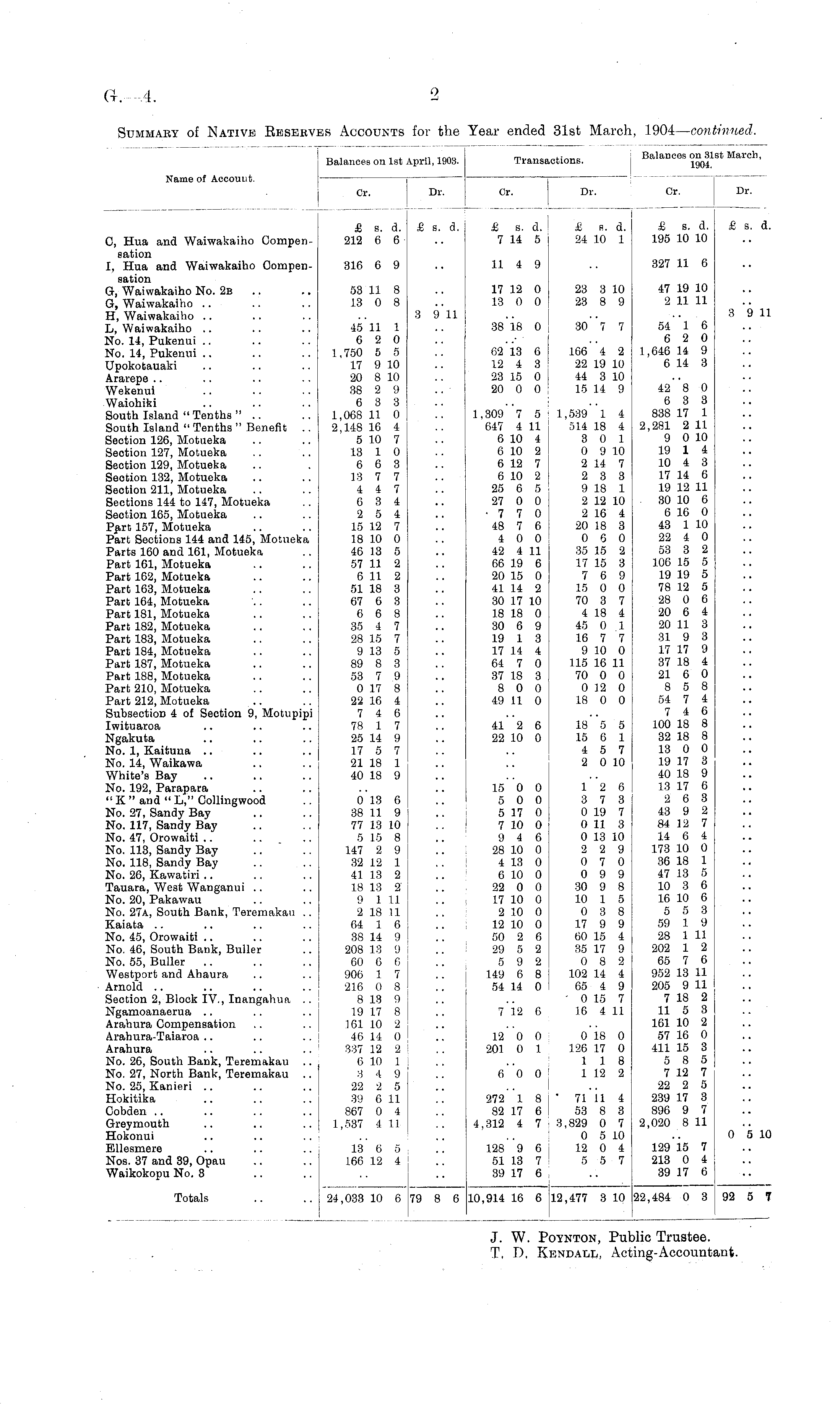 J. W. Poynton, Public Trustee. T, D, Kendall, Acting-Accountant.