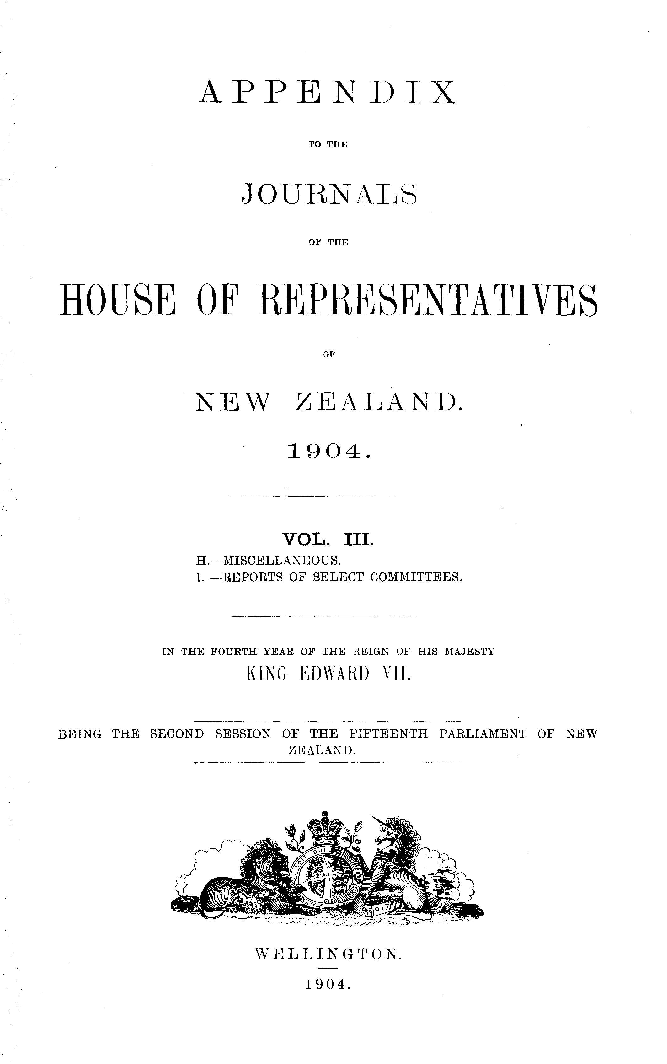 APPENDIX TO THE JOURNALS OF THE HOUSE OF REPRESENTATIVES OF NEW ZEALAND. 1904.