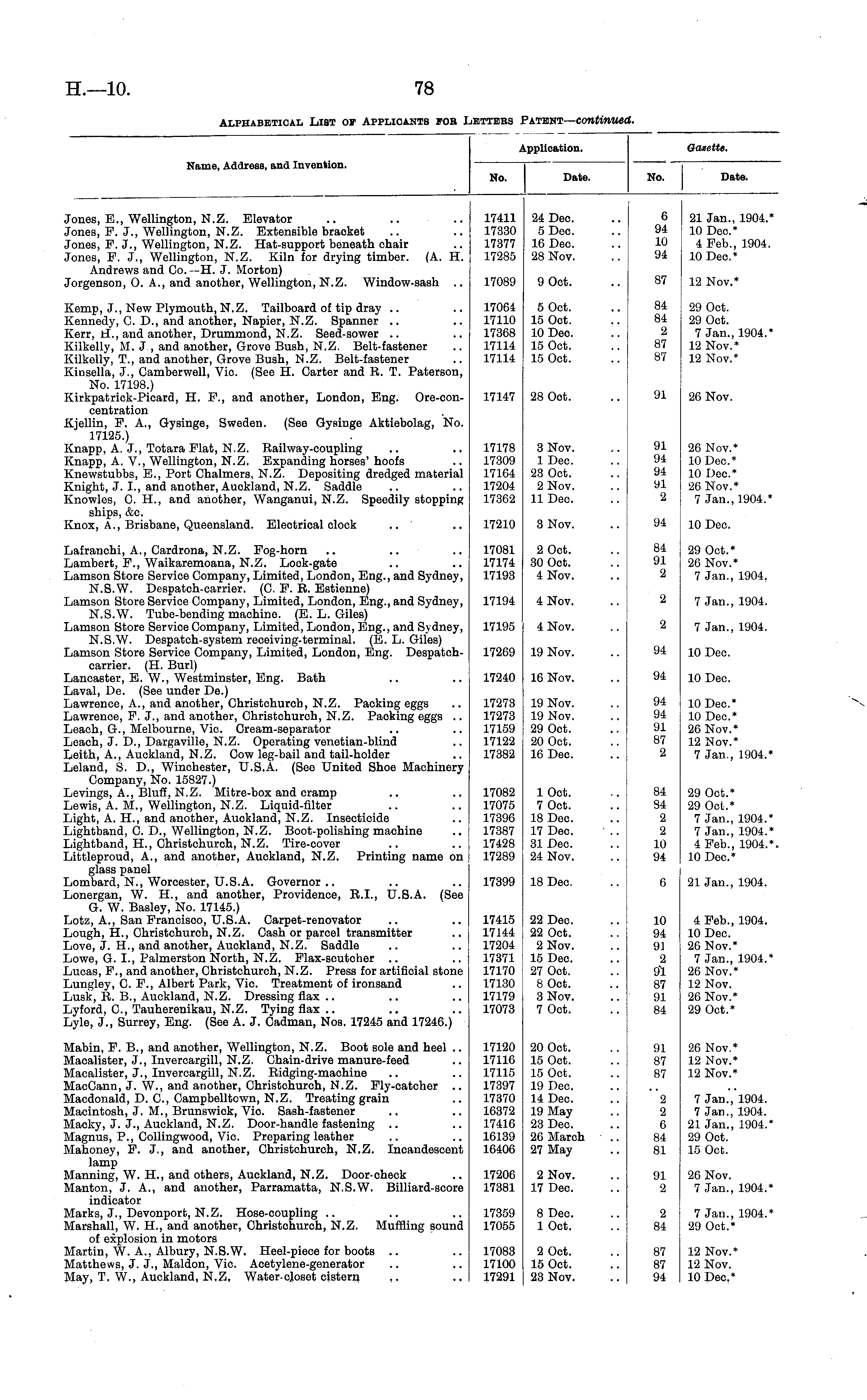 Alphabetical List of Applicants for Letters Patent—continued.