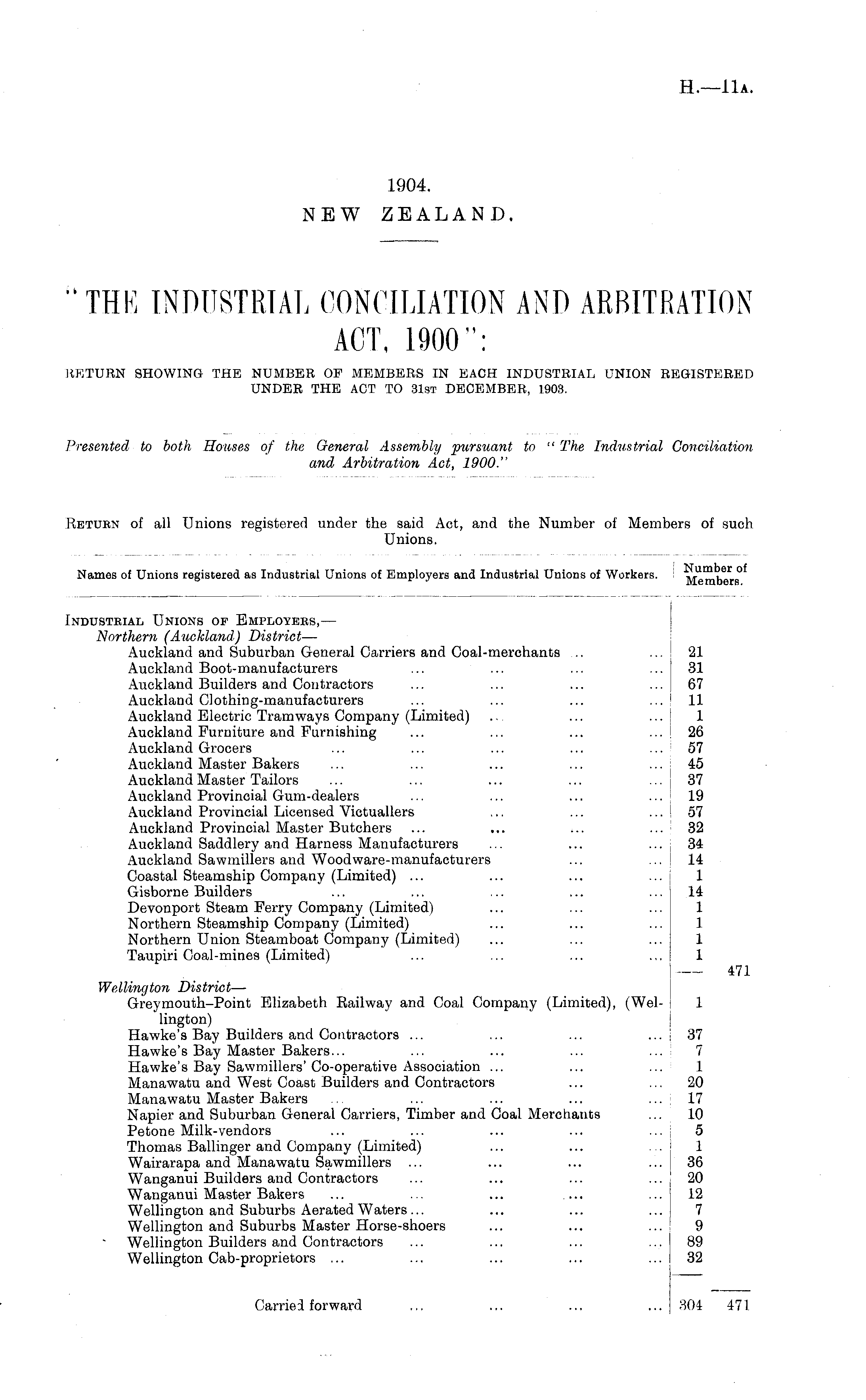 "THE INDUSTRIAL CONCILIATION AND ARBITRATION ACT, 1900": RETURN SHOWING THE NUMBER OF MEMBERS IN EACH INDUSTRIAL UNION REGISTERED UNDER THE ACT TO 31st DECEMBER, 1903.