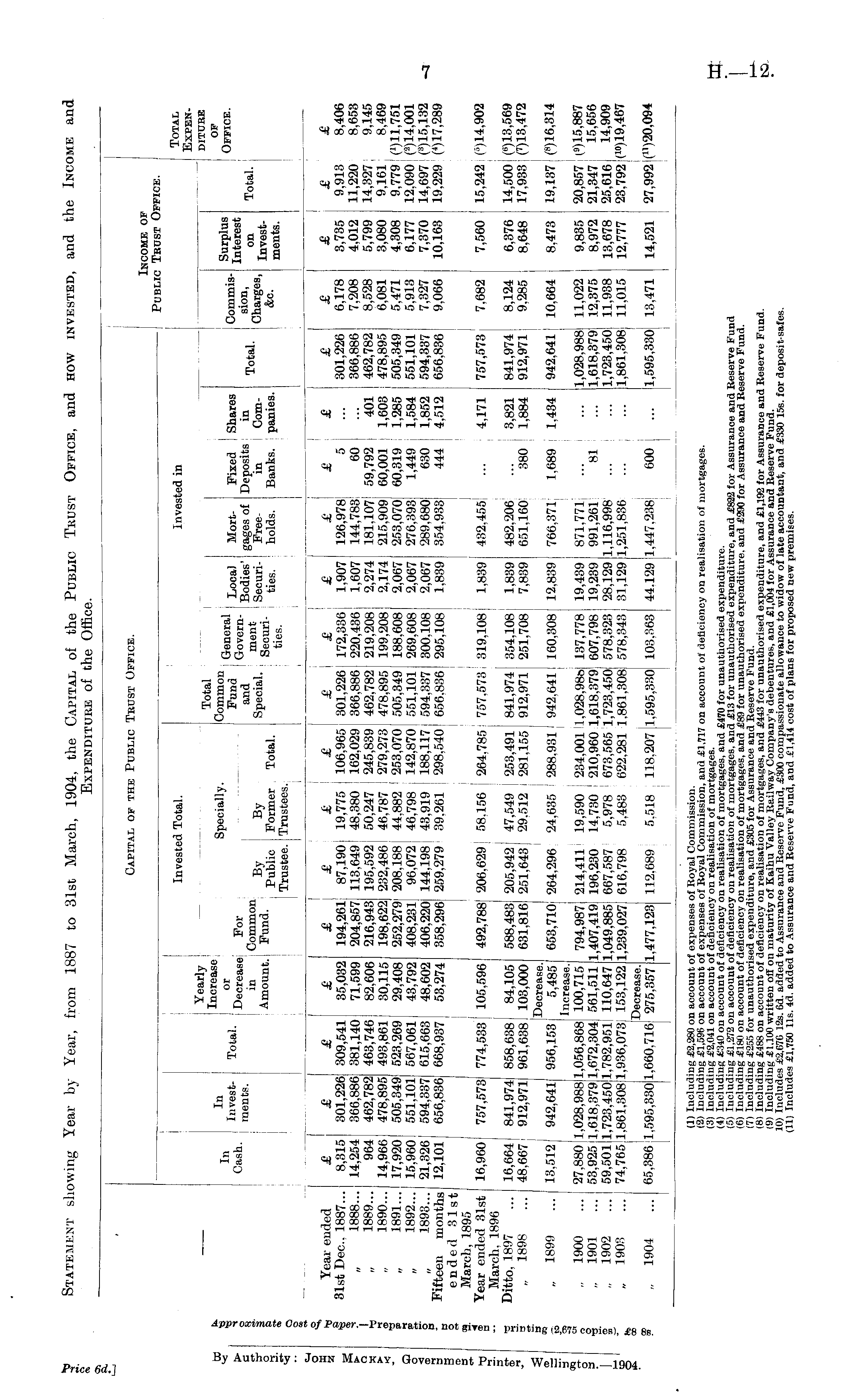 Statement showing Year by Year, from 1887 to 31st March, 1904, the Capital of the Public Trust Office, and how invested, and the Income and Expenditure of the Office.