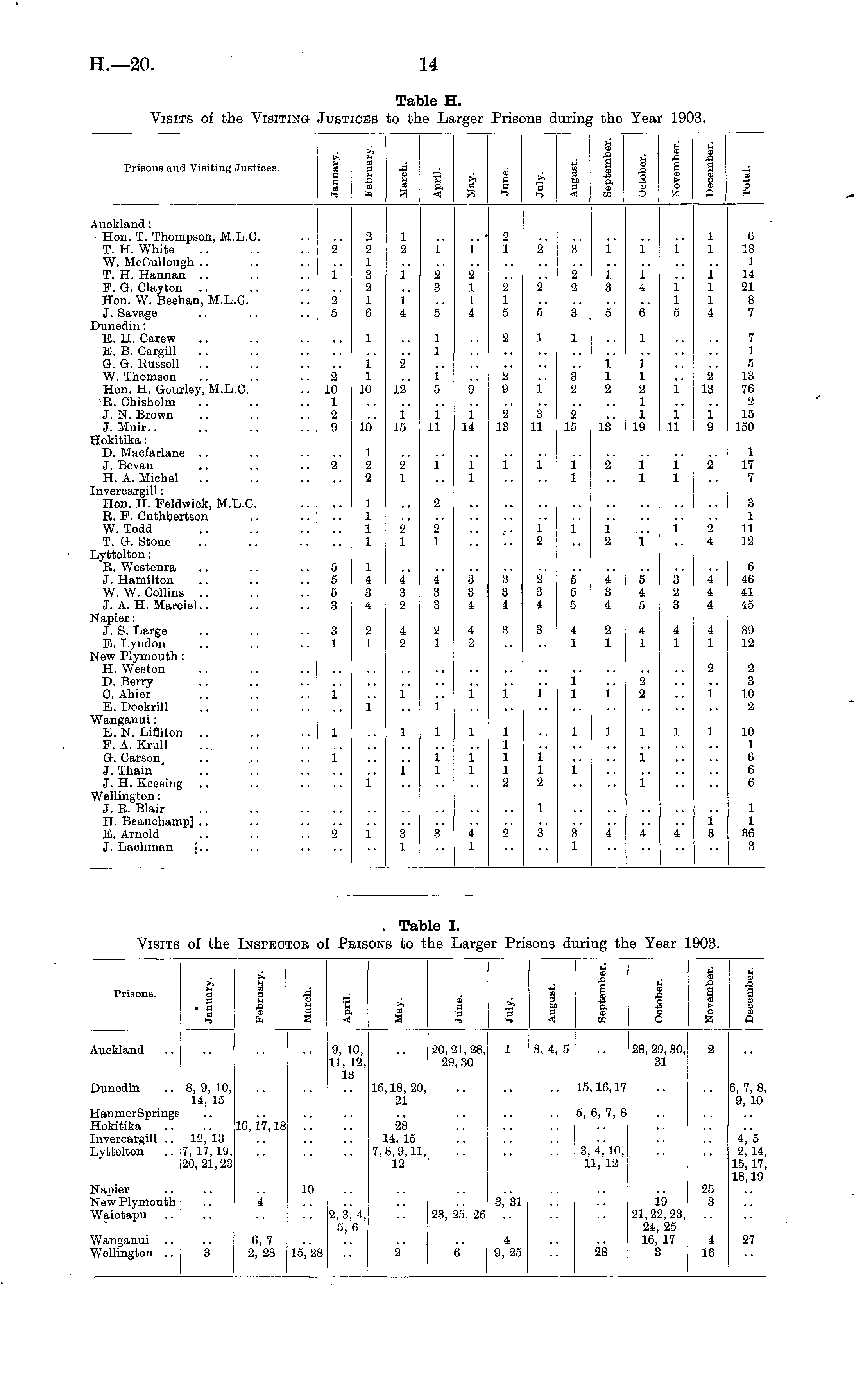 Table H. Visits of the Visiting Justices to the Larger Prisons during the Year 1903.