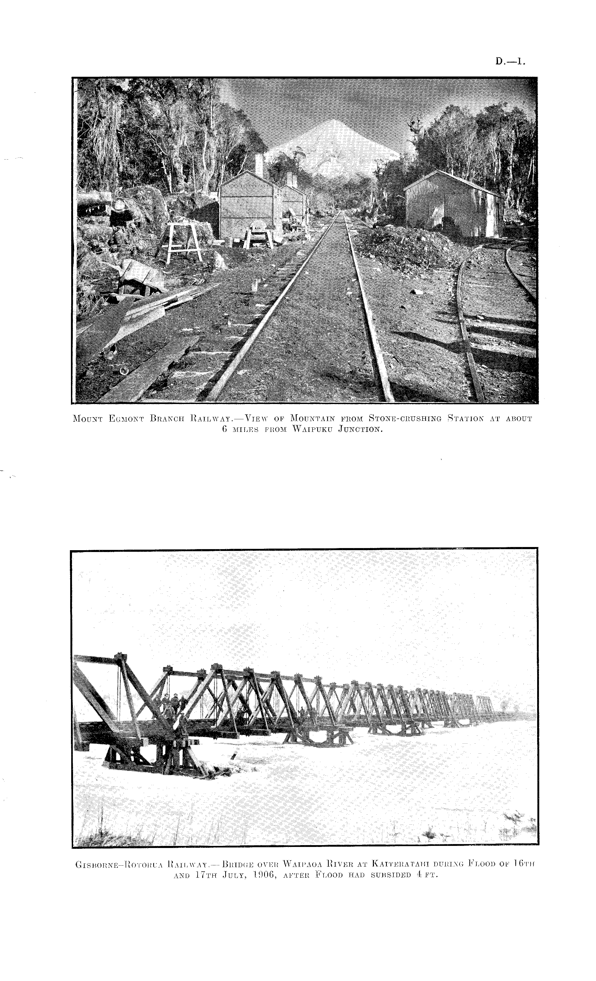 Gisborne-Rotorua Railway.—Bridge over Waipaoa River at Kaiteratahi during Flood of 16th and 17th July, 1906, after Flood had subsided 4 ft.
