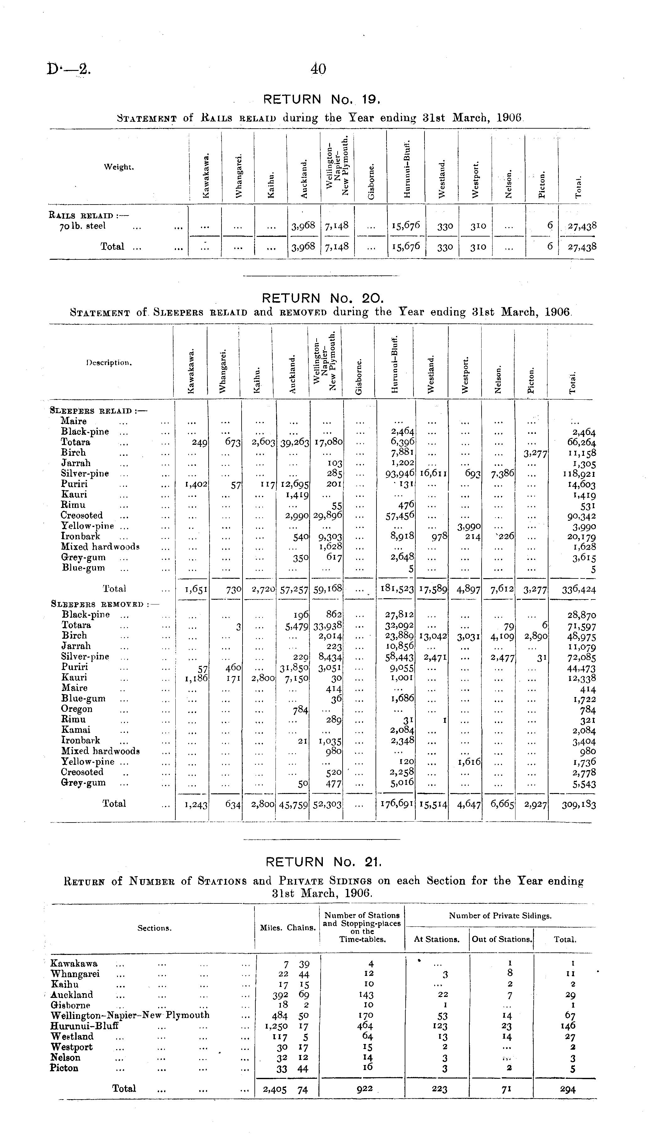 RETURN No. 20. Statement of Sleepers Relaid and removed during the Year ending 31st March, 1906.