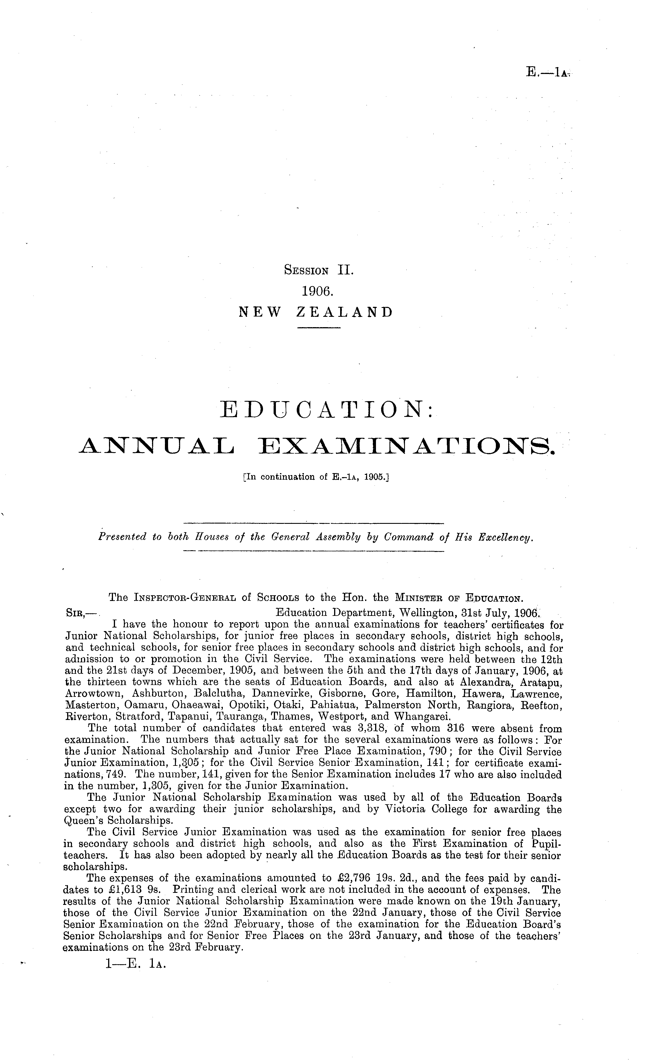 EDUCATION: ANNUAL EXAMINATIONS. [In continuation of E.-1a, 1905.]