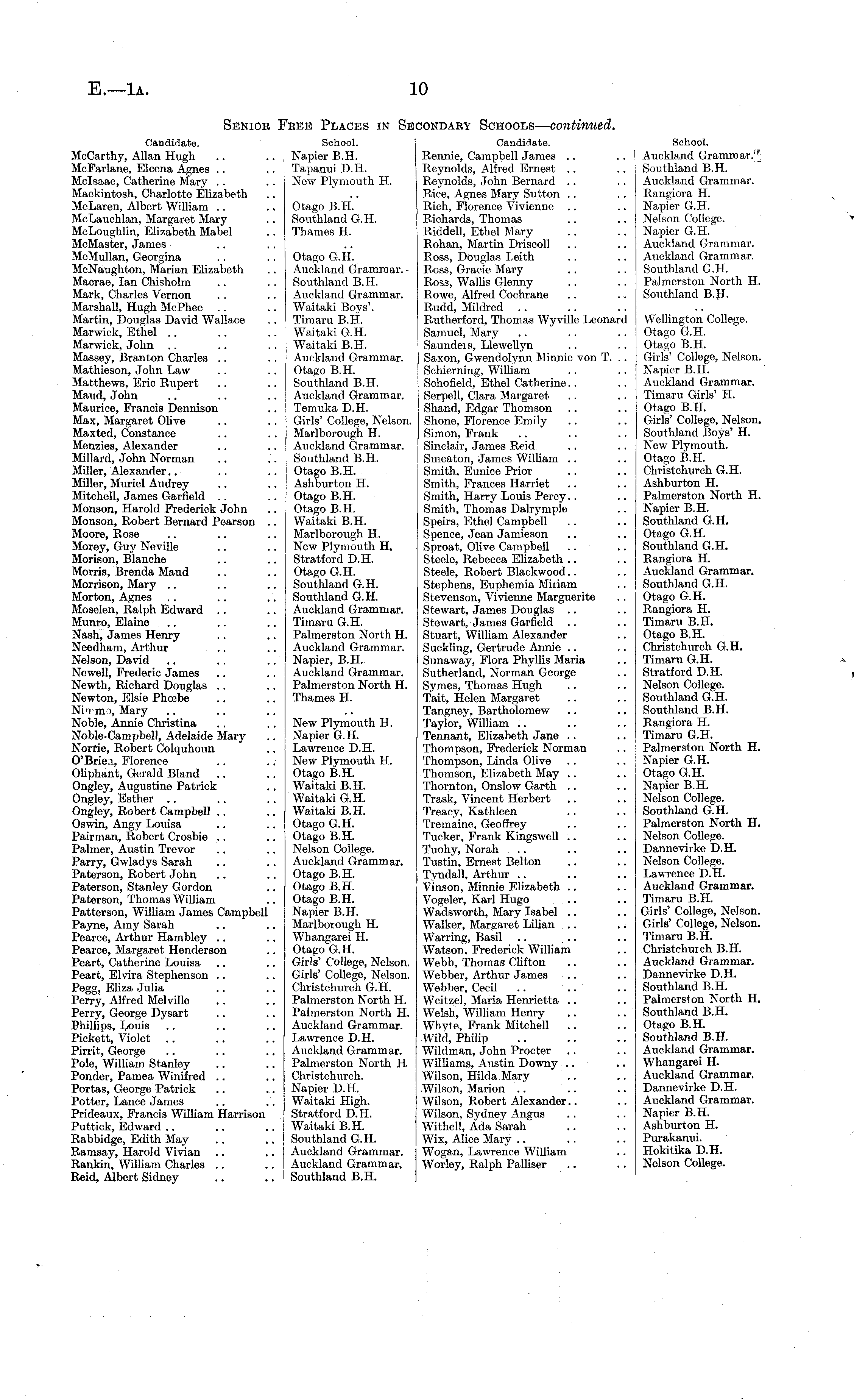 Candidate. McCarthy, Allan Hugh McFarlane, Elcena Agnes Mclsaac, Catherine Mary Mackintosh, Charlotte Elizabeth McLaren, Albert William McLauchlan, Margaret Mary McLoughlin, Elizabeth Mabel McMaster, James McMullan, Georgina McNaughton, Marian Elizabeth Macrae, Ian Chisholm Mark, Charles Vernon Marshall, Hugh McPhee Martin, Douglas David Wallace Marwick, Ethel Marwick, John Massey, Branton Charles Mathieson, John Law Matthews, Eric Rupert Maud, John Maurice, Francis Dennison Max, Margaret Olive Maxted, Constance Menzies, Alexander Millard, John Norman Miller, Alexander.. Miller, Muriel Audrey Mitchell, James Garfield Monson, Harold Frederick John Monson, Robert Bernard Pearson .. Moore, Rose Morey, Guy Neville Morison, Blanche Morris, Brenda Maud Morrison, Mary Morton, Agnes Moselen, Ralph Edward Munro, Elaine Nash, James Henry Needham, Arthur Nelson, David Newell, Frederic James Newth, Richard Douglas Newton, Elsie Phoebe Nino mo, Mary Noble, Annie Christina Noble-Campbell, Adelaide Mary Norfie, Robert Colquhoun O'Brie.i, Florence Oliphant, Gerald Bland Ongley, Augustine Patrick Ongley, Esther Ongley, Robert Campbell Oswin, Angy Louisa Pairman, Robert Crosbie Palmer, Austin Trevor Parry, Gwladys Sarah Paterson, Robert John Paterson, Stanley Gordon Paterson, Thomas William Patterson, William James Campbell Payne, Amy Sarah Pearce, Arthur Hambley Pearce, Margaret Henderson Peart, Catherine Louisa Peart, Elvira Stephenson .. Pegg, Eliza Julia Perry, Alfred Melville Perry, George Dysart Phillips, Louis Pickett, Violet Pirrit, George Pole, William Stanley Ponder, Pamea Winifred Portas, George Patrick Potter, Lance James Prideaux, Francis William Harrison Puttick, Edward Rabbidge, Edith May Ramsay, Harold Vivian Rankin, William Charles Reid, Albert Sidney School. Napier B.H. Tapanui D.H. New Plymouth H. Otago B.H. Southland G.H. Thames H. Otago G.H. Auckland Grammar. - Southland B.H. Auckland Grammar. Waitaki Boys'. Timaru B.H. Waitaki G.H. Waitaki B.H. Auckland Grammar. Otago B.H. Southland B.H. Auckland Grammar. Temuka D.H. Girls' College, Nelson. Marlborough H. Auckland Grammar. Southland B.H. Otago B.H. Ashburton H. Otago B.H. Otago B.H. Waitaki B.H. Marlborough H. New Plymouth H. Stratford D.H. Otago G.H. Southland G.H. Southland G.H. Auckland Grammar. Timaru G.H. Palmerston North H. Auckland Grammar. Napier, B.H. Auckland Grammar. Palmerston North H. Thames H. Candidate. Rennie, Campbell James Reynolds, Alfred Ernest Reynolds, John Bernard Rice, Agnes Mary Sutton Rich, Florence Vivienne Richards, Thomas Biddell, Ethel Mary Rohan, Martin Driscoll Ross, Douglas Leith Ross, Gracie Mary Ross, Wallis Glenny Rowe, Alfred Cochrane Rudd, Mildred Rutherford, Thomas Wyville Leonard Samuel, Mary Saundeis, Llewellyn Saxon, Gwendolynn Minnie von T. .. Schierning, William Schofield, Ethel Catherine.. Serpell, Clara Margaret Shand, Edgar Thomson Shone, Florence Emily Simon, Frank Sinclair, James Reid Smeaton, James William Smith, Eunice Prior Smith, Frances Harriet Smith, Harry Louis Percy Smith, Thomas Dalrymple Speirs, Ethel Campbell Spence, Jean Jamieson Sproat, Olive Campbell Steele, Rebecca Elizabeth Steele, Robert Blackwood Stephens, Euphemia Miriam Stevenson, Vivienne Marguerite Stewart, James Douglas Stewart, James Garfield Stuart, William Alexander Suckling, Gertrude Annie Sunaway, Flora Phyllis Maria Sutherland, Norman George Symes, Thomas Hugh Tait, Helen Margaret Tangney, Bartholomew Taylor, William Tennant, Elizabeth Jane Thompson, Frederick Norman Thompson, Linda Olive Thomson, Elizabeth May Thornton, Onslow Garth Trask, Vincent Herbert Treacy, Kathleen Tremaine, Geoffrey Tucker, Frank Kingswell Tuohy, Norah Tustin, Ernest Belton Tyndall, Arthur Vinson, Minnie Elizabeth Vogeler, Karl Hugo Wadsworth, Mary Isabel Walker, Margaret Lilian Warring, Basil Watson, Frederick William Webb, Thomas Clifton Webber, Arthur James Webber, Cecil Weitzel, Maria Henrietta Welsh, William Henry Whyte, Frank Mitchell Wild, Philip Wildman, John Procter Williams, Austin Downy Wilson, Hilda Mary Wilson, Marion .. Wilson, Robert Alexander.. Wilson, Sydney Angus Withell, Ada Sarah Wix, Alice Mary .. Wogan, Lawrence William Worley, Ralph Palliser School. Auckland Grammar. ,,7 Southland B.H. Auckland Grammar. Eangiora H. Napier G.H. Nelson College. Napier G.H. Auckland Grammar. Auckland Grammar. Southland G.H. Palmerston North H. Southland B.H. Wellington College. Otago G.H. Otago B.H. Girls' College, Nelson. Napier B.H. Auckland Grammar. Timaru Girls' H. Otago B.H. Girls' College, Nelson. Southland Boys' H. New Plymouth. Otago B.H. Christchurch G.H. Ashburton H. Palmerston North H. Napier B.H. Southland G.H. Otago G.H. Southland G.H. Eangiora H. Auckland Grammar. Southland G.H. Otago G.H. Rangiora H. Timaru B.H. Otago B.H. Christchurch G.H. Timaru G.H. Stratford D.H. Nelson College. Southland G.H. Southland B.H. Rangiora H. Timaru G.H. Palmerston North H. Napier G.H. Otago G.H. Napier B.H. Nelson College. Southland G.H. Palmerston North H. Nelson College. Dannevirke D.H. Nelson College. Lawrence D.H. Auckland Grammar. Timaru B.H. Girls' College, Nelson. Girls' College, Nelson. Timaru B.H. Christchuich B.H. Auckland Grammar. Dannevirke D.H. Southland B.H. Palmerston North H. Southland B.H. Otago B.H. Southland B.H. Auckland Grammar. Whangarei H. Auckland Grammar. Dannevirke D.H. Auckland Grammar. Napier B.H. Ashburton H. Purakanui. Hokitika D.H. Nelson College. New Plymouth H. Napier G.H. Lawrence D.H. New Plymouth H. Otago B.H. Waitaki B.H. Waitaki G.H. Waitaki B.H. Otago G.H. Otago B.H. Nelson College. Auckland Grammar. Otago B.H. Otago B.H. Otago B.H. Napier B.H. Marlborough H. Whangarei H. Otago G.H. Girls' College, Nelson. Girls' College, Nelson. Christchurch G.H. Palmerston North H. Palmerston North H. Auckland Grammar. Lawrence D.H. Auckland Grammar. Palmerston North H Christchurch. Napier D.H. Waitaki High. Stratford D.H. Waitaki B.H. Southland G.H. Auckland Grammar. Auckland Grammar. Southland B.H.
