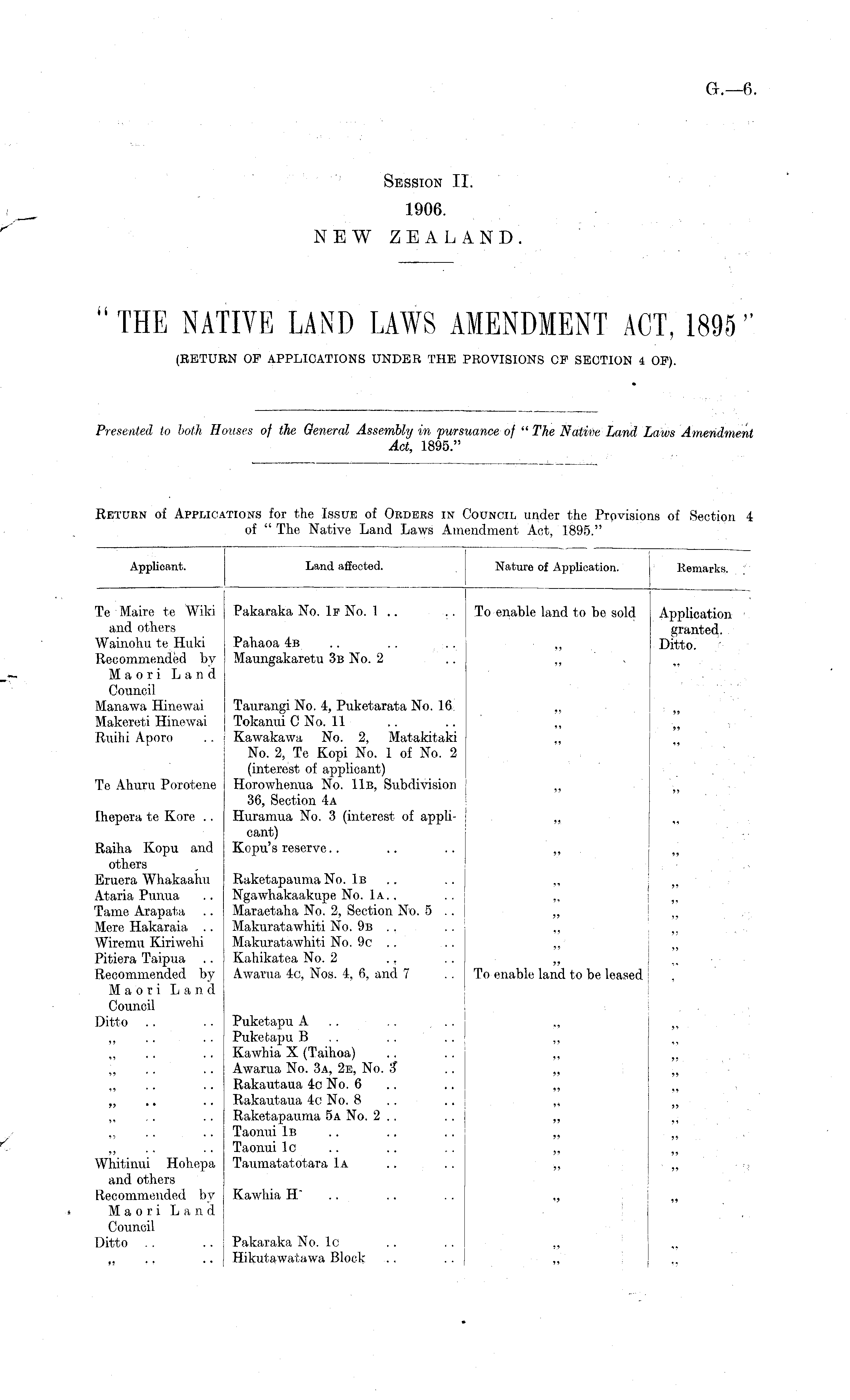 "THE NATIVE LAND LAWS AMENDMENT ACT, 1895" (RETURN OF APPLICATIONS UNDER THE PROVISIONS OF SECTION 4 OF).