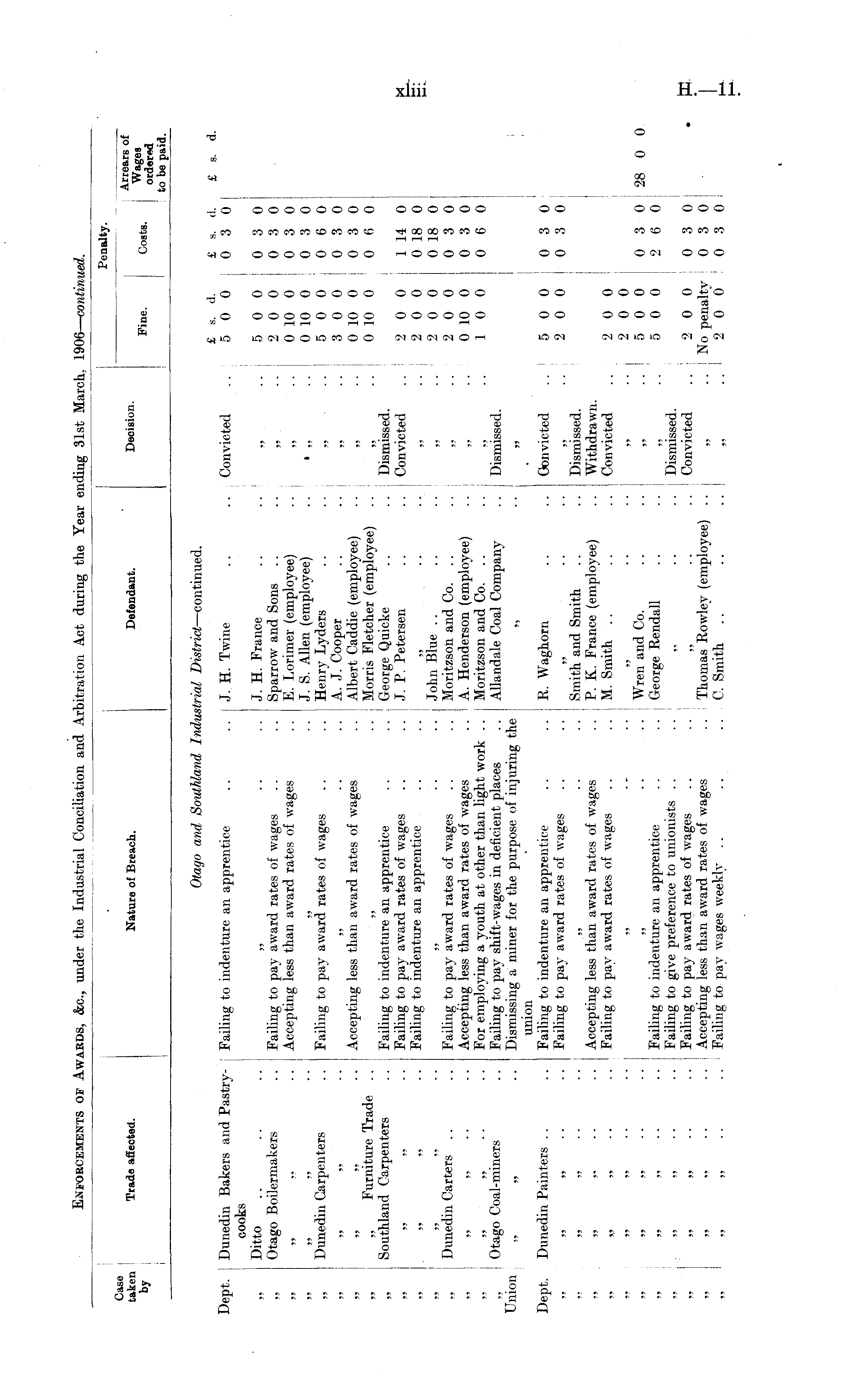 Enforcements of Awards, &c., under the Industrial Conciliation and Arbitration Act during the Year ending 31st March, 1906.— continued.