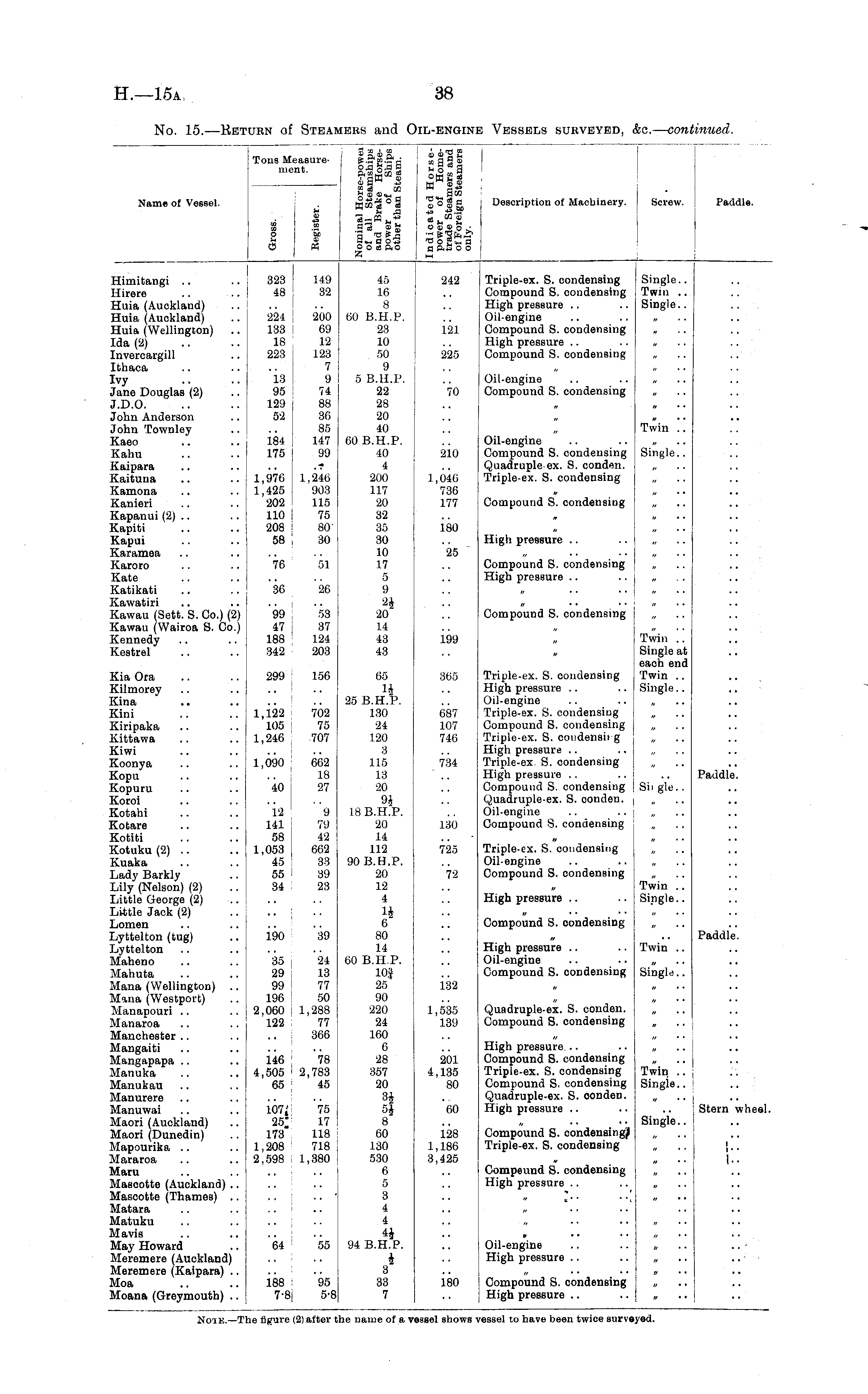 No. 15. —Return of Steamers and Oil-engine Vessels surveyed, &c. — continued.