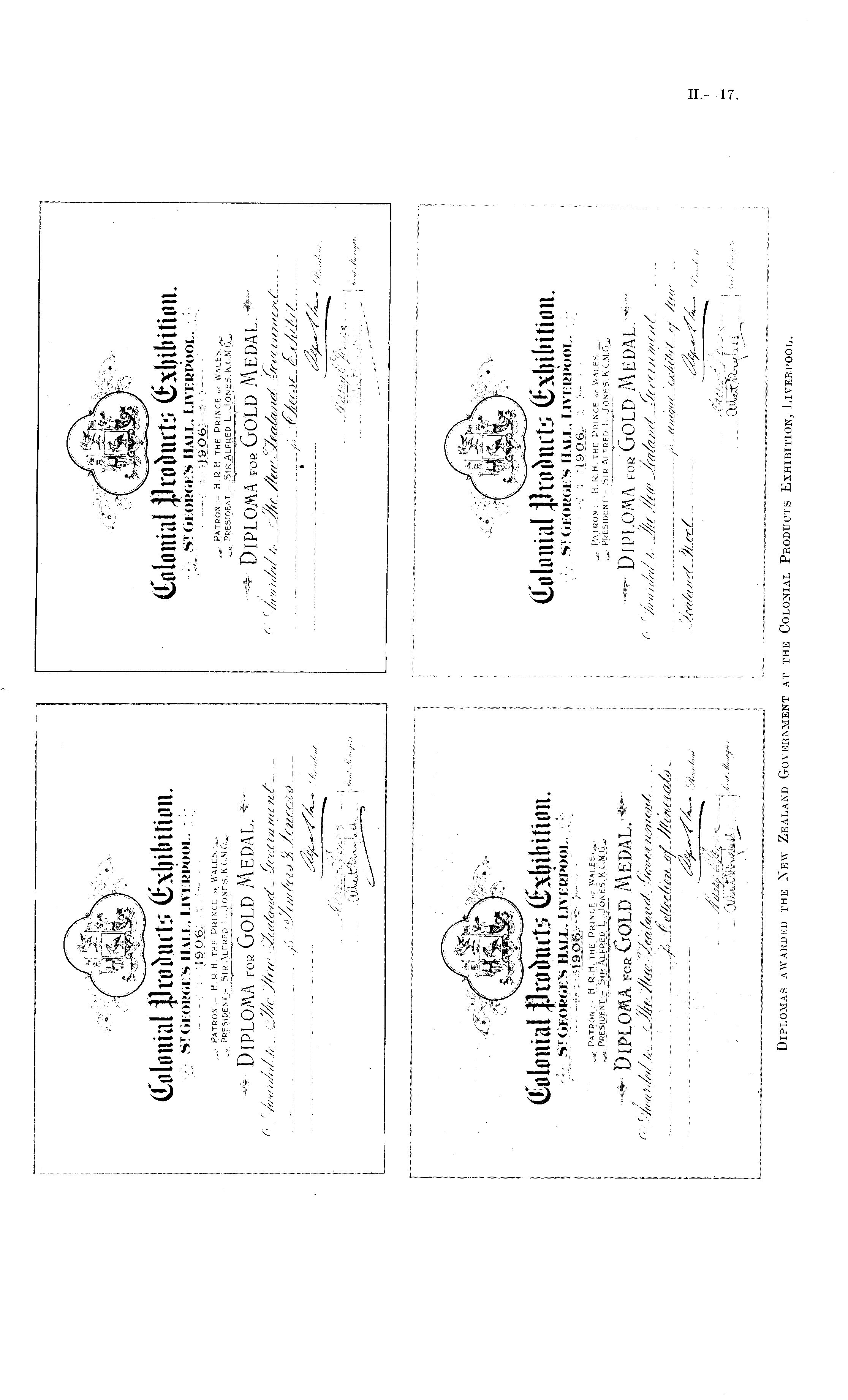 Diplomas awarded the New Zealand Government at the Colonial Products Exhibition, Liverpool.