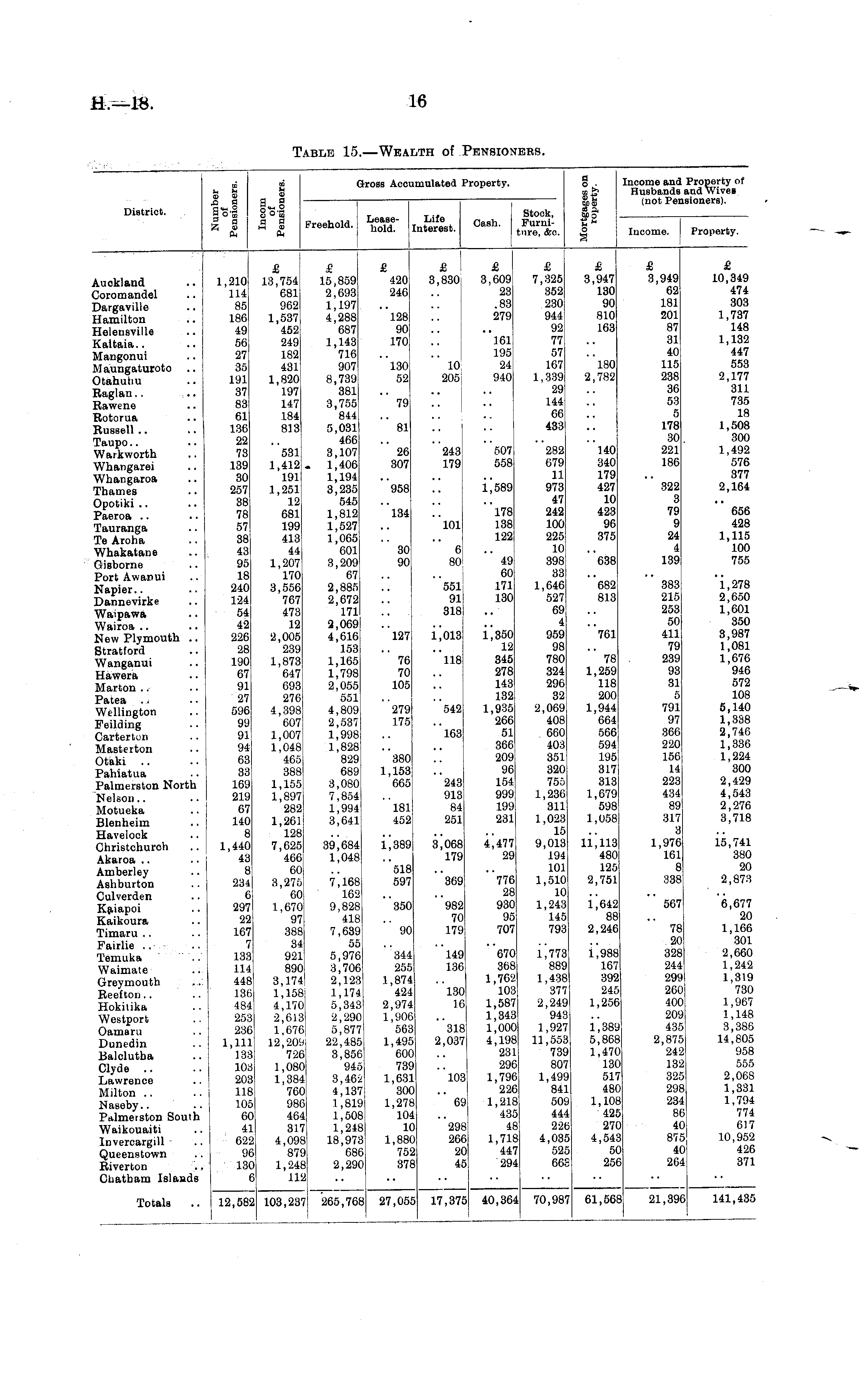 District. l=1 lol a fl M Q Gross Acci imulated Property. if P o Income and Property of Husbands and Wives (not Pensioners). Freehold. Leasehold. Life Interest. Cash. Stock, Furniture, &o. lucome. Property. Auckland Coromandel Dargaville Hamilton Helensville Kaltaia.. Mangonui Maungaturoto Otahuliu Raglan . . Rawene Rotorua Russell .. Taupo.. Warkworth Whangarei Whangaroa Thames Opotiki Paeroa Tauranga Te Aroha Whakatane Gisborne Port Awanui Napier.. Dannevirke Waipawa Wairoa .. New Plymouth .. Stratford Wanganui Hawera Marton Patea Wellington Peilding Cartertun Masterton Otaki Pahiatua Palmerston North Nelson.. Motueka Blenheim Havelook Christchurch Akaroa Amberley Ashburton Culverden Kaiapoi Kaikoura Timaru Fairlie Temuka Waimate Greymouth Reefton Hokitika Westport Oamaru Dunedin Balclutha Clyde Lawrence Milton .. Naseby.. Pttlmerston South Waikouaiti Invercargill Queenstown Riverton Chatham Islands 1,210 114 85 186 49 56 27 35 191 37 83 61 136 22 73 139 30 257 38 78 57 38 43 95 18 240 124 54 42 226 28 190 67 91 27 596 99 91 94 63 33 169 219 67 140 8 1,440 43 8 234 6 297 22 167 133 448 136 484 253 236 1,111 133 103 203 118 105 60 41 622 96 130 6 £ 13,754 681 962 1,537 452 2491 182 431 1,820 197 147 184 813 £ 15,859 2,693 1,197 4,288 687 1,143 716 907 8,739 381 3,755 844 5,031 466 3,107 1,406 1,194 3,235 545 1,812 1,527 1,065 601 3,209 67 2,885 2,672 171 Q.069 4,616 153 1,165 1,798 2,055 551 4,809 2,537 1,998 1,828 829 689 3,080 7,854 1,994 3,641 £ 420 246 128 90 170 130 52 £ 3,830, I 10 205 £ 3,609 23 .83 279 161 195 24 940| £ 7,325 352! 2301 944 92 77 57 167 1,339 29 144 66 433 £ 3,947 130 90 810 163 180 2,782 £ 3,949 62 181 201 87 31 40 115 238 36 53 5 178 30 221 186 £ 10,349 474 303 1,737 148 1,132 447 553 2,177 311 735 18 1,508 300 1,492 576 377 2,164 79 81 . . 531 1,412 . 191 1,251 12 681 199 413 44 1,207 170 3,556 767 473 12 2,005 239 1,873 647 693 276 4,398 607 1,007 1,048 465 388 1,155 1,897 282 1,261 128 7,625 466 60 3,276 60 1,670 97 388 84 921 890 3,174! 1,158 4,170 ■2,613! 1.676 12,209 726i 1,080 1,384 760 986 464 317 4,098 879 1,248 112 26 307 958 243 179 507 558 i',589 282 679 11 973 47 242 100 225 10 398 33 1,646 527 69 4 959 98 780 324 296 32 2,069 408 660 403 351 320 755 1,236 311 1,023 15 9,013 194 101 1,510 10 1,243 145 793 140 340 179 427 10 423 96 375 322 3 79 9 24 4 139 "l34 " 101! 178 138 122 656 428 1,115 100 755 30 90 6! so; 49 60 171 130 638 551! 91 ! 318, "682 813 383 215 253 50 411 79 239 93 31 n 791 97 366 220 156 14 223 434 89 317 D 1,976 161 8 338 1,278 2,650 1,601 350 3,987 1,081 1,676 946 572 108 5,140 1,338 2,74G 1,336 1,224 300 2,429 4,543 2,276 3,718 "l27 1,013 1,350 12 345 278 143 132 1,935 266 51 366 209 96 154 999 199 231 "761 76 70 105 ' 118 78 1,259 118 200 1,944 664 566 594 195 317 313 1,679 598 1,058 "279 175 542 163 380 1,153 665 243 913 84 251 "l81 452 39,684 1,048 i^389 "5I8 597 179 29 11,113 480 125 2,751 15,741 380 20 2,873 1 1 1 I I; J [ 1 i ) ) 7,168 162 9,828 4181 7,639; 55 5,976 3,706 2,123 1,174 5,343' 2,290: 5,877! 22,485, 3,856 945 3,462 4,137 1,819 1,508 1,248 18,973 686 2,290 350 "369 982 70 179 776 28 930 95 707 1,642 88 2,246 567 I ) I ! I i I 3 1 6,677 20 1,166 301 2,660 1,242 1,319 730 1,967 1,148 3,386 14,805 958 555 2,068 1,331 1,794 774 617 10,952 426 371 90 344 255 1,874 424 2,974 1,906 563 1,495 600 739 1,631 300 1,278 104 10 1,880 752 378 "l49 136 130 16 "318 2,037 "670 368 1,762 103 1,587 1,343 1,000 4,198 231 296 1,796 226 1,218 435 48 1,718 447 294 1,773 889 1,438 377 2,249 943 1,927 11,553 739 807 1,499 841 509 444 22b 4,035 525 66C 1,988 167 392 245 1,256 1,389 5,868 1,470 130 517 480 1,108 425 270 4,543 50 256 78 20 328 244 299 260 400 209 435 2,875 242 132 325 298 234 86 40 875 40 264 "lO3 69 298 266 20 45 Totals 12,582 103,237 265,768 27,055 17,375 40,364 70,98'" 61,568 21,396 141,435