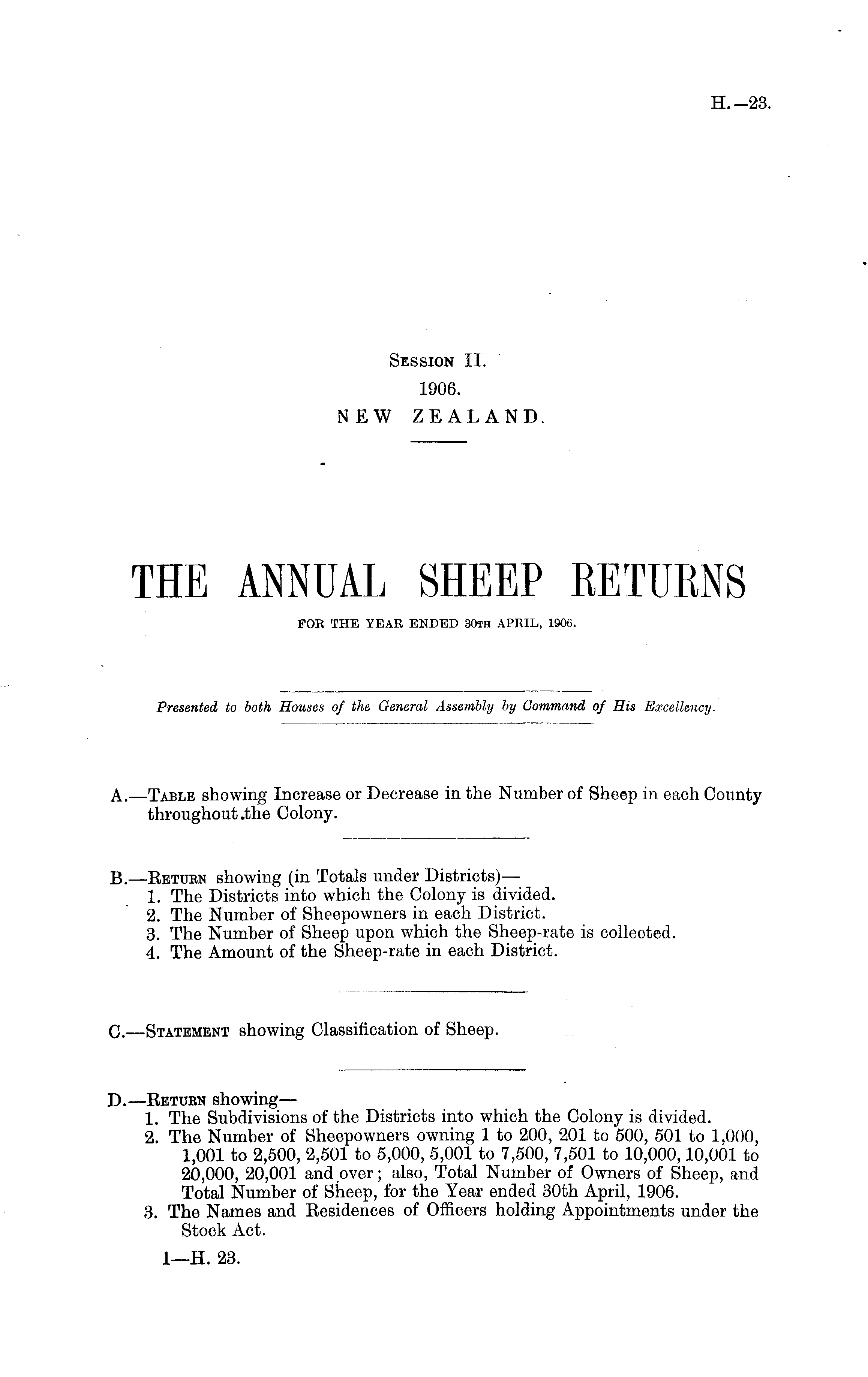 THE ANNUAL SHEEP RETURNS FOR THE YEAR ENDED 30th APRIL, 1906.
