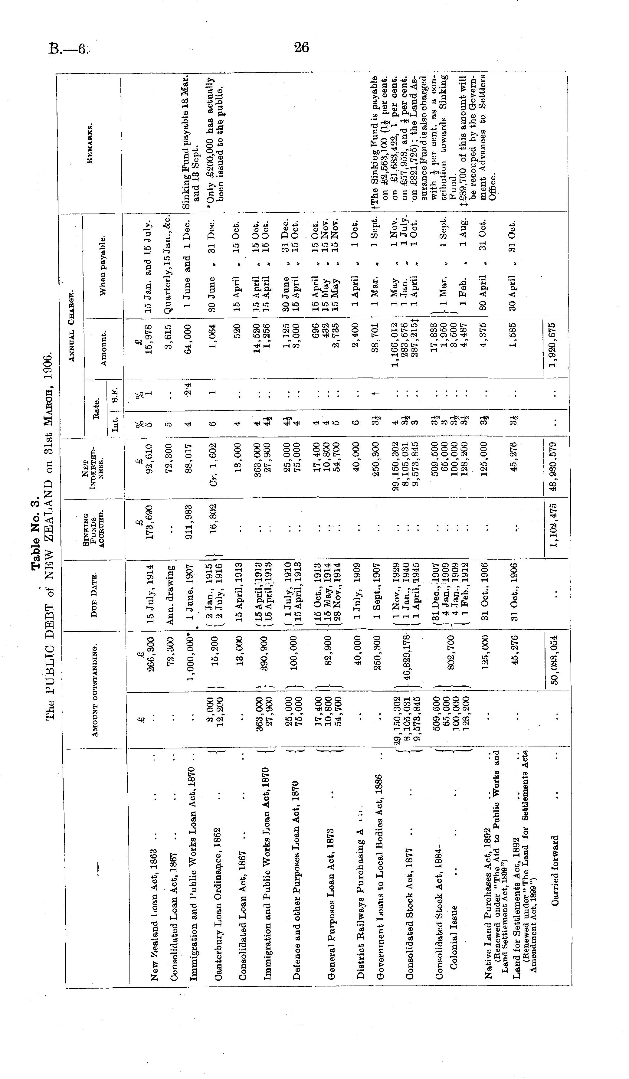 Table No. 3. The PUBLIC DEBT of NEW ZEALAND on 31st March, 1906.