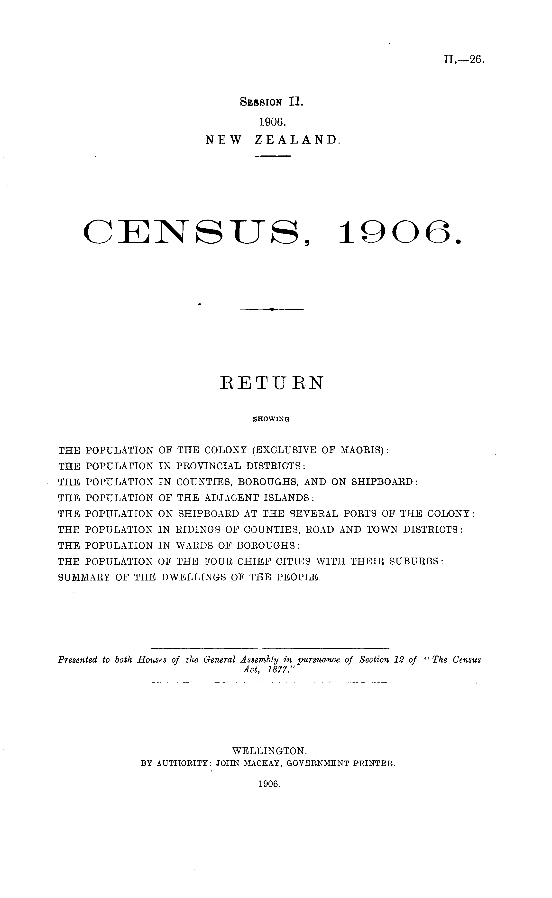 WELLINGTON. BY AUTHOBITY: JOHN MAGKAY, GOVERNMENT PRINTER. 1906.