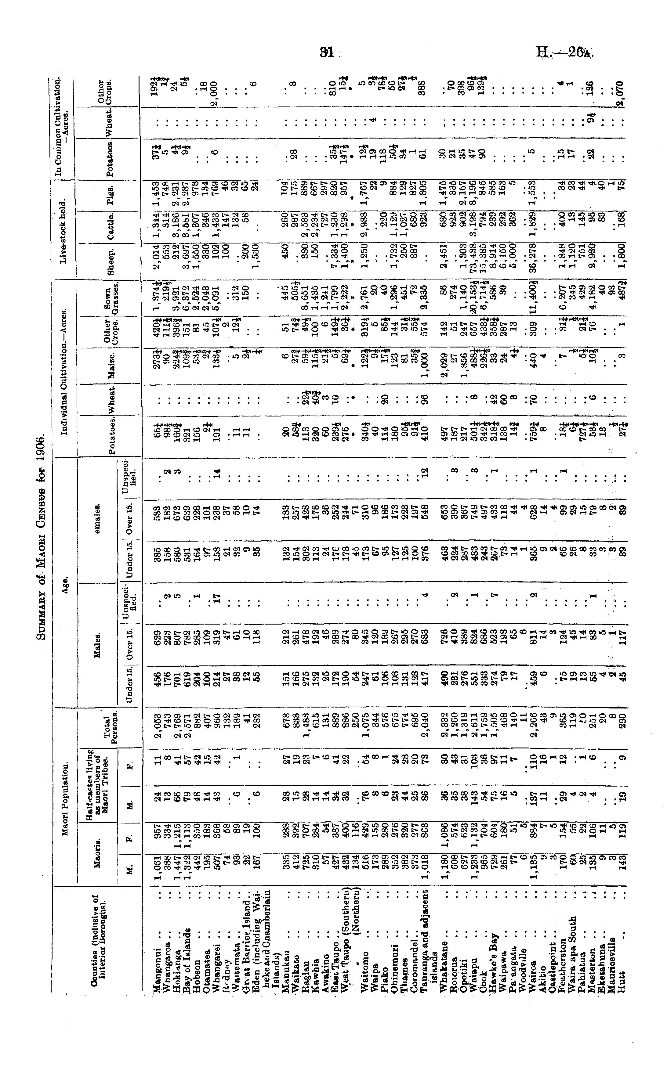 Live-stock held. Iu Common Cultivation. —Acres. Maori Population. Age. Individual Cultivation.— Acres. Counties (inclusive of Interior Boroughs). Half-castes living as members of Maori Tribes. Potatoes. Wheat. Maize, Maoris. Males. einalee. Total Sown Grasses. Other Crops. Sheep. Cattle. Pigs. Potatoes. Wheat. M. F. M. F. Under 15. Over 15. | U fl 8^"" Under 15. Over 15. Unspecified. Mangonui .. Wnangaroa .. Hokianga Bay of Islands Hobson Otamatea Whangarei .. R' dney Waitemata .. Oivat Eariier Island.. Eden (including Waihekear dCimmberlain - Islands) Manukau Waikato Raglan Kawhia Awakino EaetTaupo .. VVest Taupo (Southern) , (Northern) Waitomo Waipa Piako Ohinemuri .. Thames Coromandel.. Tauranga and adjacent islands Whakatane .. Roiorua Opotiki Waiapu Cook Hawke's Bay Waipawa Pa angata .. Woodville Wairoa Akitio Castlepoint .. Featherston Waira apa South Pahiatua .. ., MaBterton .. ., Eketahuna .. Mauriceville Hum 1,031 388 1,447 1,322 442 195 507 74 93 22 167 957 334 1,215 1,113 350 183 368 58 89 19 109 24 13 66 79 48 14 43 11 8 41 57 42 15 42 2,053 743 2,769 2,571 882 407 960 132 189 41 282 456 176 701 619 204 100 214 27 38 12 55 629 223 807 782 285 109 319 47 01 10 118 "2 5 1 385 158 580 531 164 97 158 21 32 9 35 583 182 673 639 228 101 238 37 58 10 74 "2 3 66J 98| 160| 321 156 191 273J 90 224| 109} 534 1334 420J lllj 396} 151 81 45 1074 2 124 1,374 J 2194 3,921' 6,372 2,524 2,043 5,091 2,014 553 212 3,697 1,550 330 102 100 1,344 314 3,180 3.S81 1,307 346! 1,433) 147 132 58 1,453 748 2,231 2,287 978 134 769 46 32 65 24 37j 94 192J 24 "is 2,000 17 14 "6 6 1 11 11 5 24 312 150 200J l,530| I •• 6 ■• I 6 .. •• 335 412 725 310 57 427 432 134 516 173 289 352 382 373 1,018 288 392 707 284 54 387 400 116 429 155 280 276 320 277 803 28 15 28 14 14 34 32 27 19 23 7 6 41 22 678 838 1,483 615 131 889 886 250 1,075 344 576 675 774 695 2,040 151 166 275 132 25 172 190 54 247 61 106 108 131 128 417 212 261 478 192 46 289 274 80 345 120 189 267 295 270 683 132 154 302 113 24 17C 178 45 173 67 95 127 125 100 376 183 257 428 178 36 252 244 71 310 96 186 173 223 197 548 20 58} 113 320 60 239J 276 * 22£ 40} 3 10 6 27| 59J 1154 69J * 51 74| 494 100 6 149J 36J - 445 5054 8,651 1,435 ' 1,211 i 1,799 2,222 I 450 380 150 260i 287 j 2,583 : 2,234| 727 ; 1,2301 1,298 104 175 889 667 297 820 957 28 "a 1,400 35 4 1474 eio 15: • 76 8 6 23 44 25 86 54 8 1 24 28 20 73 3404 40 114 180 95J 91* 410 20 1224 94 174 123 81 35} 1,000 319 J 5 854 144 314 55} 574 2,761 ! 20 40 1,296 451 72 I 2,335 i 1,250 •• 1,732 250 387 2,988 220 1,129 1,027 680 923 1,767 22 9 884 129 827 1,805 124 19 118 504 34 1 61 4 5 3i 78i 56 27, 4 12 96 388' 1,180 608 627 1,233 965 729 261 77 6 1,135 9 3 170 60 25 135 9 3 143 1,086 574 623 1,132 704 604 180 51 5 884 7 5 154 55 22 106 11 5 119 36 35 38 143 54 75 16 5 30 43 31 103 36 97 11 7 2,332 1,260 1,319 2,611 1,759 1,505 468 140 11 2,266 43 9 365 119 251 20 8 290 490 231 276 551 333 274 79 17 726 410 389 824 686 523 198 65 6 811 14 3 124 45 14 83 5 1 117 2 463 224 287 483 243 2C7 73 14 1 365 9 2 66 26 8 33 3 3 39 653 390 367 749 497 433 118 44 4 628 14 4 99 29 15 79 8 2 89 3 497 187 217 501J 342J 318J 138 14} 2,029 27 1,856 488J 2264 33 24 142 51 247 657 433J 358| 287 13 86 ! 274 1,140 20,1534 6,7144 586 30 2,451 680 923 902 3,198 794 239 292 362 1,475 335 2,167 8,196 845 585 163 5 30 21 35 47 90 70 398 96, 139j 1 "7 3 1 8 42 60 3 1,303 73,438 15,385 8,914 6,150 5,000 137 11 110 16 1 12 '459 6 2 "l 759J 8 TO 440 4 309 11,40041 36,278 1,839 1,553 "5 I •• - 29 4 2 4 i 6 75 19 13 55 4 2 45 "l 1 7274 53J 13 4 27J 6 7 104 76 6,207 345 429 4,182 40 93 487| 1J848 1,120 751 2,930 400 13 145 95 83 34 23 44 4 40 1 75 is 17 '22 'J)* 4 1 136 19 "9 "3 1 1J800 168 2,070