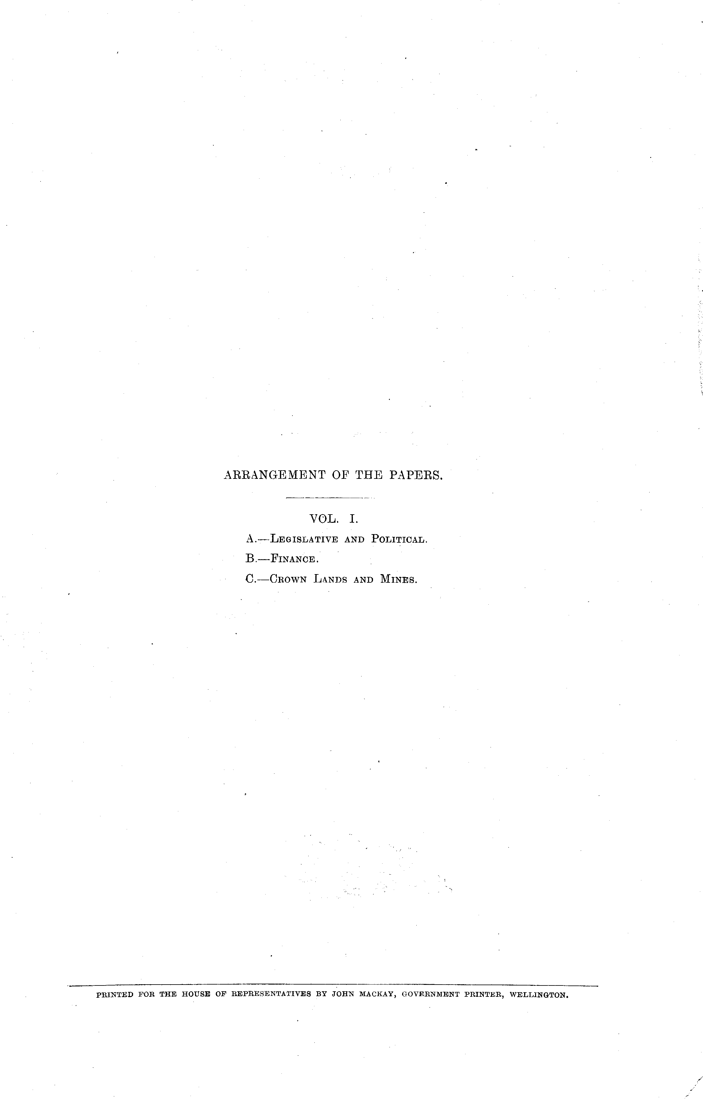 VOL. I. A.—Legislative and Political. B.—Finance. C.—Cbown Lands and Mines.