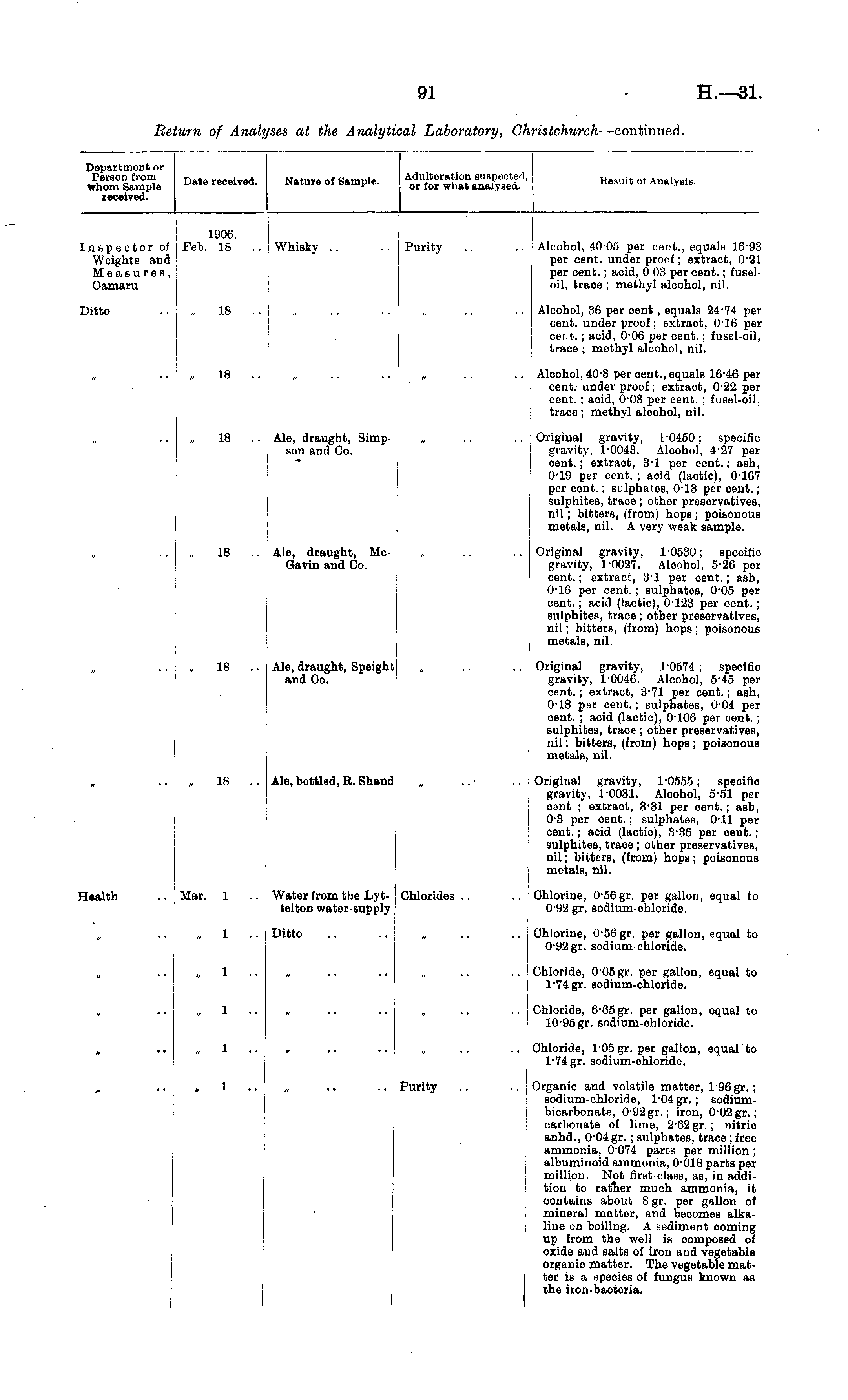 Return of Analyses at the Analytical Laboratory, Christchurch -continued.
