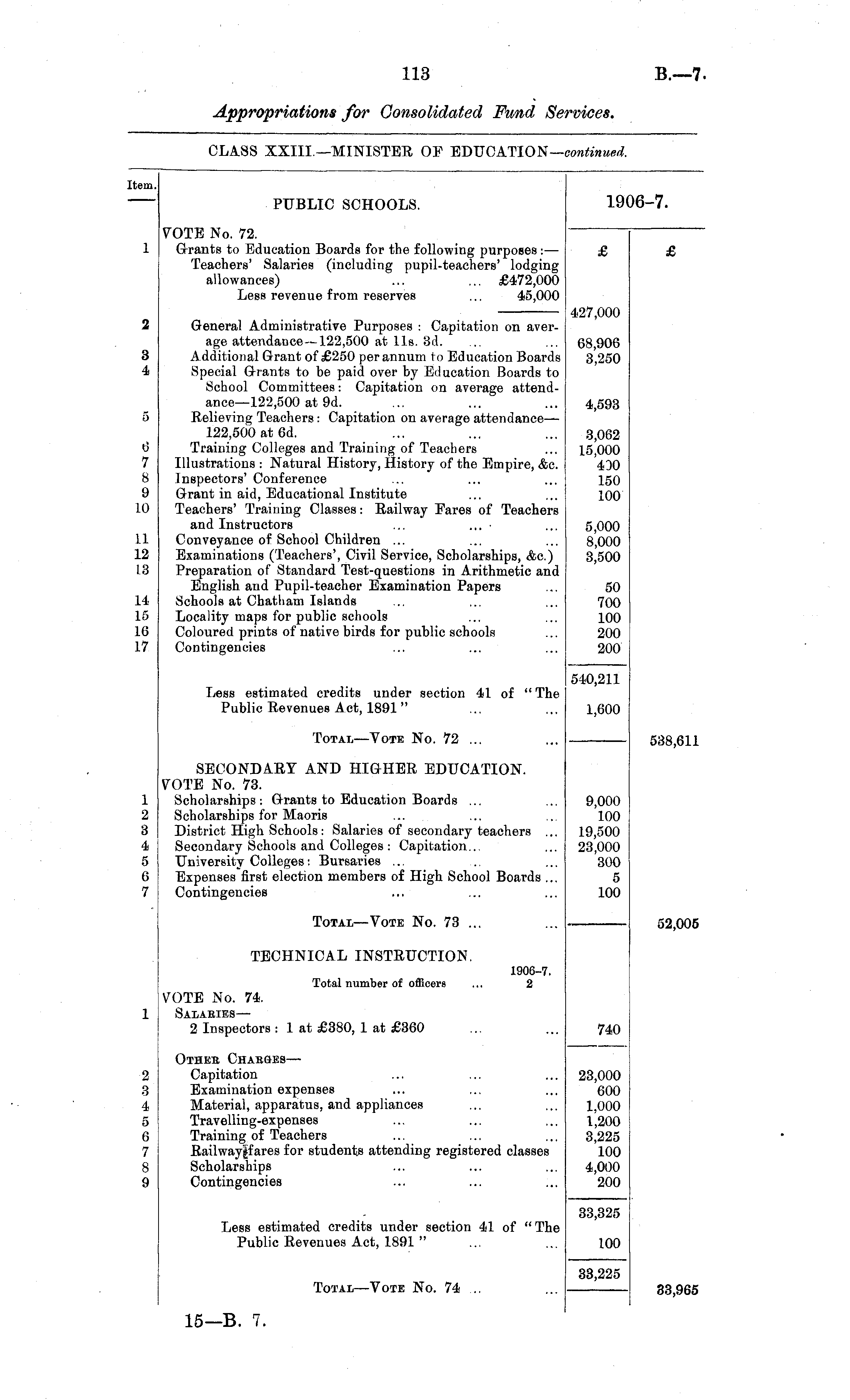 CLASS XXIII.—MINISTER OF EDUCATION— continued.