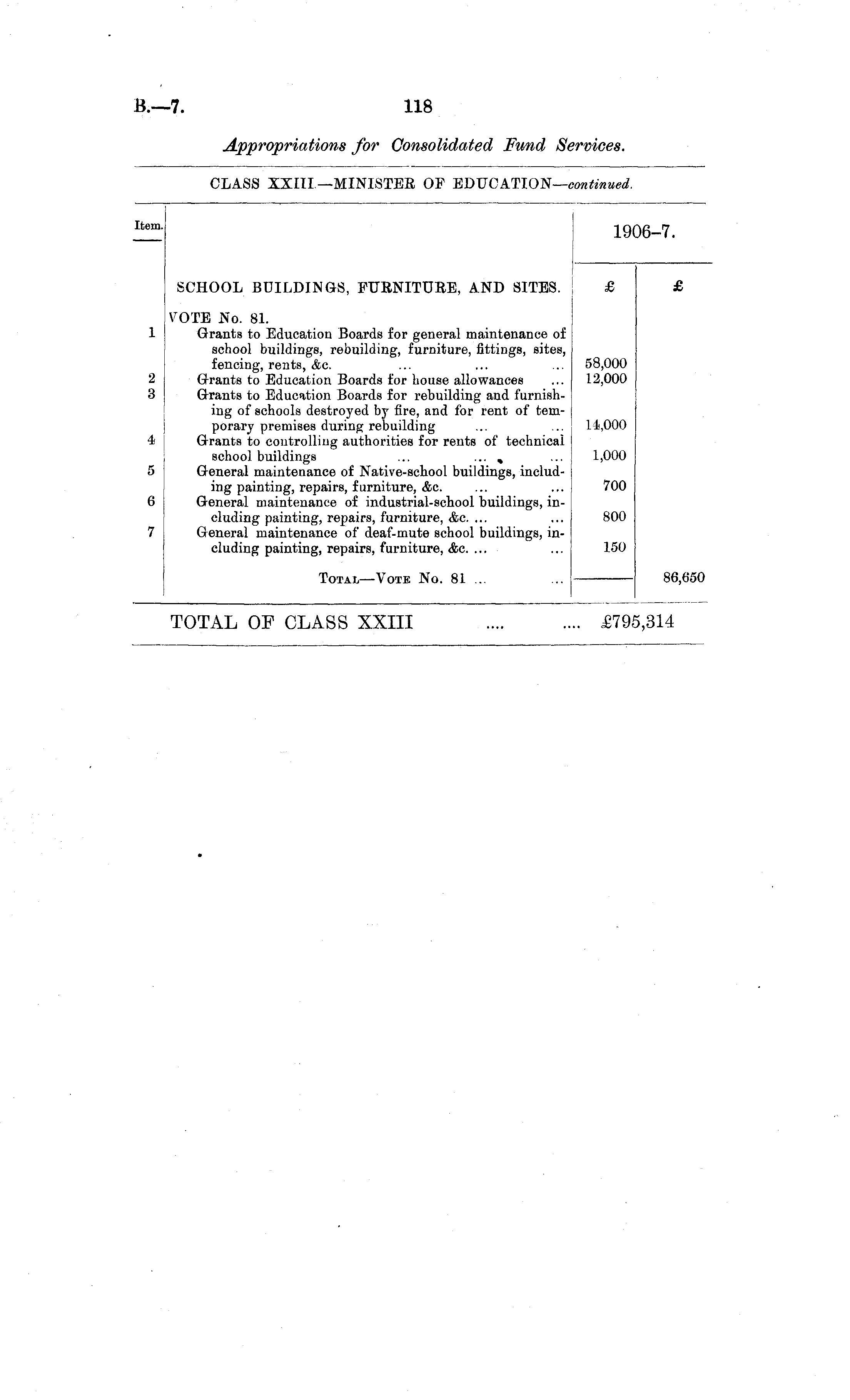 CLASS XXIII.—MINISTER OF EDUCATION— continued.