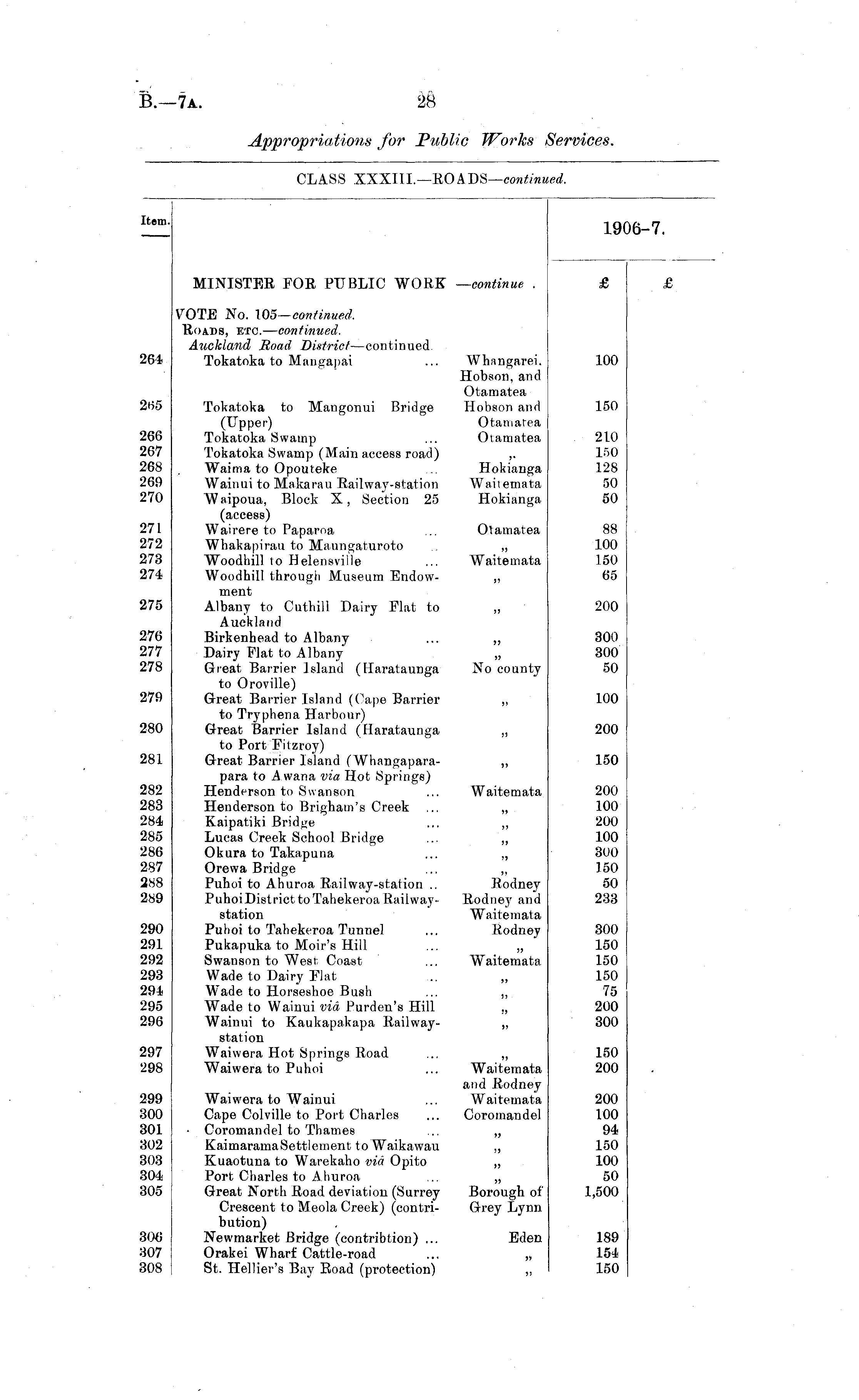 Item. 19 6-7. MINISTER FOR PUBLIC WORK —continue . 265 266 267 268 269 270 271 272 273 274 275 276 277 278 279 280 281 282 283 284 285 286 287 288 289 161 VOTE No. 105— continued, Roads, etc. — continued. Auckland Road District —continued. Tokatoka to Mangapai ... Whangarei. Hobson, and Otamatea Tokatoka to Mangonui Bridge Hobson and (Upper) Otamatea Tokatoka Swamp ... Otamatea Tokatoka Swamp (Main access road) ,, Waima to Opouteke .. Hokianga Wainui to Makarau Railway-station Waitemata Waipoua, Block X, Section 25 Hokianga (access) Wairere to Paparoa ... Otamatea Whakapirau to Maungaturoto ., „ Woodhill to Helensville ... Waitemata Woodhill through Museum Endow- „ ment Albany to Cuthill Dairy Flat to „ Auckland Birkenhead to Albany ... ,, Dairy Plat to Albany „ Great Barrier Island (Harataunga No county to Oroville) Great Barrier Island (Cape Barrier ,, to Tryphena Harbour) Great Barrier Island (Harataunga „ to Port Fitzroy) Great Barrier Island (Whangapara- ,, para to Awana via Hot Springs) Henderson to Svvanson ... Waitemata Henderson to Brigham's Creek ... „ Kaipatiki Bridge ... ,, Lucas Creek School Bridge ... ,, Okura to Takapuna ... „ Orevva Bridge ... ,, Puhoi to Ahuroa Railway-station .. Rodney PuhoiDistrict to Tahekeroa Railway- Rodney and station Waitemata Puhoi to Tahekeroa Tunnel ... Rodney Pukapuka to Moir's Hill ... „ Swanson to West Coast ... Waitemata Wade to Dairy Flat .. „ Wade to Horseshoe Bush ... ,, Wade to Wainui via Purden's Hill ,, Wainui to Kaukapakapa Railway- „ station Waiwera Hot Springs Road ... „ Waiwera to Puhoi ... Waitemata and Rodney Waiwera to Wainui ... Waitemata Cape Colville to Port Charles ... Coromandel ■ Coromandel to Thames ... „ KaimaramaSettlement to Waikawau „ Kuaotuna to Warekaho vid Opito „ Port Charles to Ahuroa ... „ Great North Road deviation (Surrey Borough of Crescent to Meola Creek) (contri- Grey Lynn bution) Newmarket Bridge (contribtion) ... Eden Orakei Wharf Cattle-road ... „ St. Hellier's Bay Road (protection) ,, 100 150 210 150 128 50 50 88 100 150 65 200 300 300 50 100 200 150 200 100 200 100 300 150 50 233 290 291 292 293 294 295 296 300 150 150 150 75 200 300 297 298 150 200 299 300 301 302 303 304 305 200 100 94 150 100 50 1,500 306 307 308 189 154 150