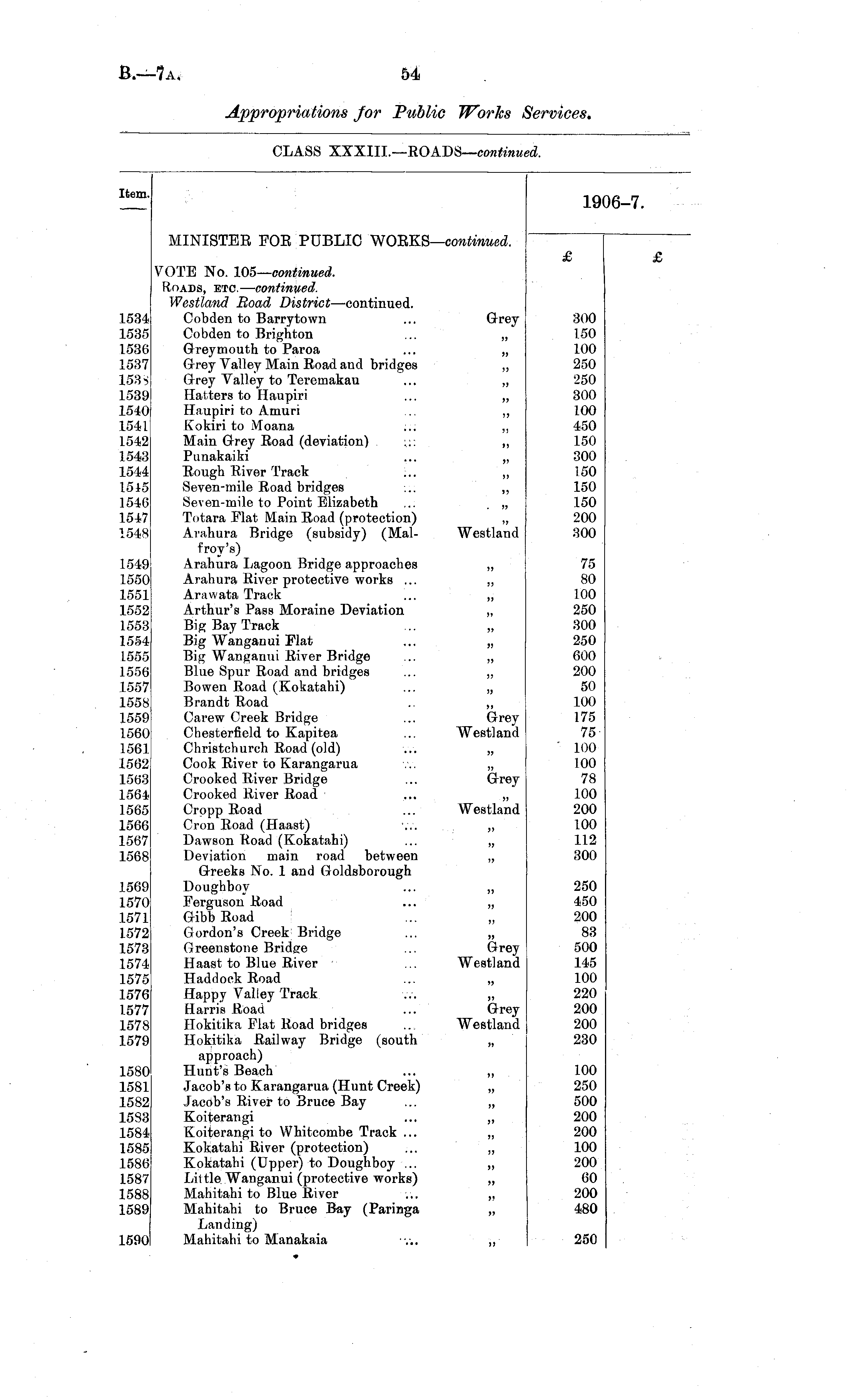 item. 19' i6-7. MINISTER FOR PUBLIC WORKS— continued. VOTE No. 105— continued. Roads, etc. — continued. Westland Road District —continued. Cobden to Barrytown ... Grey Cobden to Brighton ... „ Greymouth to Paroa ... „ Grey Valley Main Road and bridges ,, Grey Valley to Teremakau ... „ Hatters to Haupiri ... „ Haupiri to Amuri ... „ Kokiri to Moana ... „ Main Grey Road (deviation) :.:: ,, Punakaiki ... „ Rough River Track ... ,, Seven-mile Road bridges ... ,, Seven-mile to Point Elizabeth ... „ Totara Flat Main Road (protection) „ Arahura Bridge (subsidy) (Mai- Westland froy's) Arahura Lagoon Bridge approaches „ Arahura River protective works ... ,, Arawata Track ... ,, Arthur's Pass Moraine Deviation „ Big Bay Track ... „ Big Wanganui Flat ... „ Big Wanganui River Bridge ... „ Blue Spur Road and bridges ... „ Bo wen Road (Kokatahi) ... „ Brandt Road .. ,, Carew Creek Bridge ... Grey Chesterfield to Kapitea ... Westland Christchurch Road (old) ... „ Cook River to Karangarua ... „ Crooked River Bridge ... Grey Crooked River Road ... „ Crppp Road ... Westland Cron Road (Haast) ... ,, Dawson Road (Kokatahi) ... „ Deviation main road between „ Greeks No. 1 and Goldsborough Doughboy ... „ Ferguson Road ... „ Gibb Road ... ,, Gordon's Creek Bridge ... „ Greenstone Bridge ... Grey Haast to Blue River ... Westland Haddock Road ... „ Happy Valley Track ... „ Harris Road ... Grey Hokitika Flat Road bridges ... Westland Hokitika Railway Bridge (south „ approach) Hunt's Beach ... ,, Jacob's to Karangarua (Hunt Creek) „ Jacob's River to Bruce Bay ... „ Koiterangi ... „ Koiterangi to Whitcombe Track ... „ Kokatahi River (protection) ... „ Kokatahi (Upper) to Doughboy ... ,, Little Wanganui (protective works) „ Mahitahi to Blue River ... ,, Mahitahi to Bruce Bay (Paringa „ Landing) Mahitahi to Manakaia v.. ,, £ 1534 1535 1536 1537 153 S 1539 1540 1541 1542 1543 1544 1515 1546 1547 1548 300 150 100 250 250 300 100 450 150 300 150 150 150 200 300 1549 1550 1551 1552 1553 1554 1555 1556 1557 1558 1559 1560 1561 1562 1563 1564 1565 1566 1567 1568 75 80 100 250 300 250 600 200 50 100 175 75 100 100 78 100 200 100 112 300 1569 1570 1571 1572 1573 1574 1575 1576 1577 1578 1579 250 450 200 83 500 145 100 220 200 200 230 1580 1581 1582 1583 1584 1585 1586 1587 1588 1589 100 250 500 200 200 100 200 60 200 480 1590 250