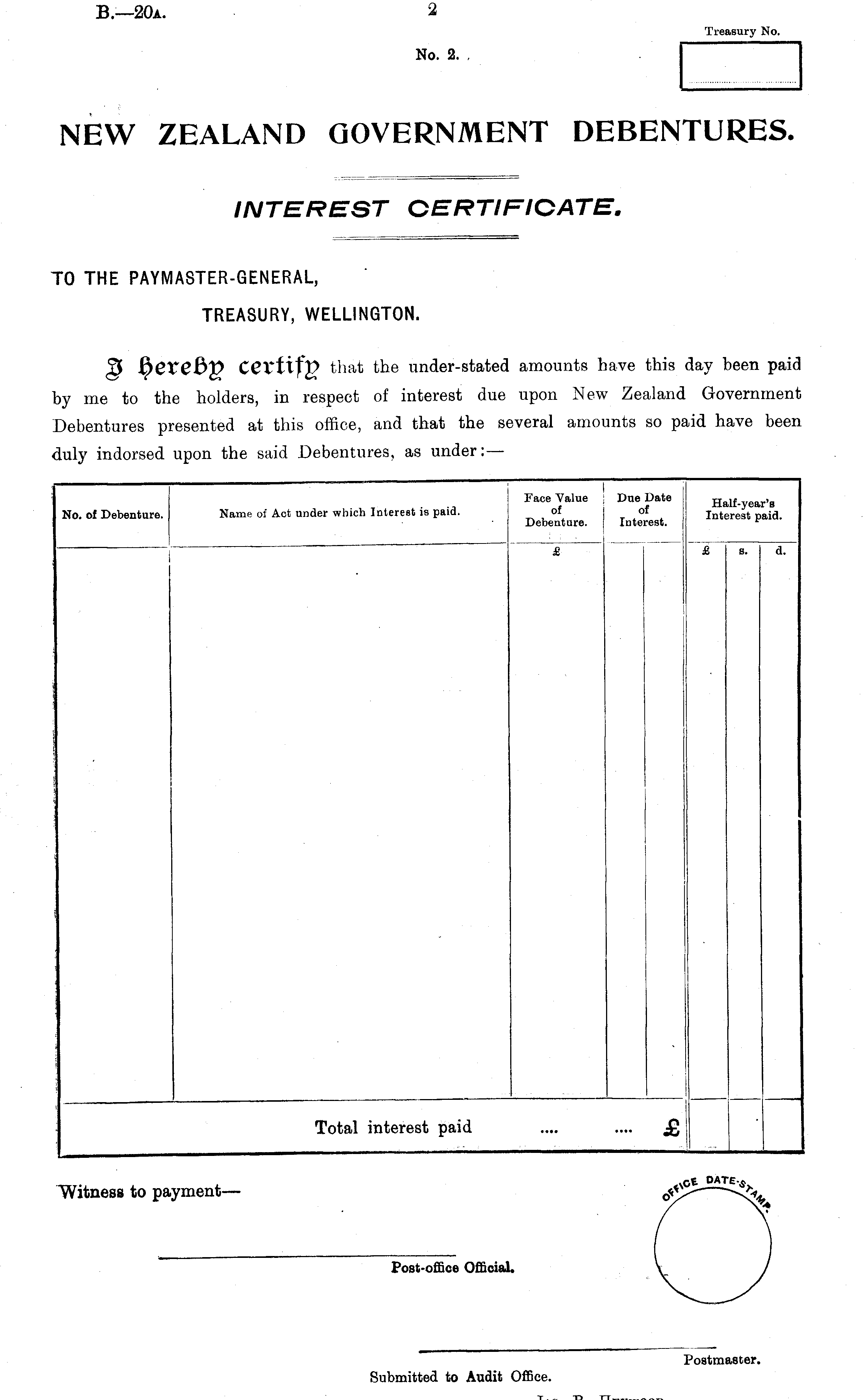 TO THE PAYMASTER-GENERAL, TREASURY, WELLINGTON.