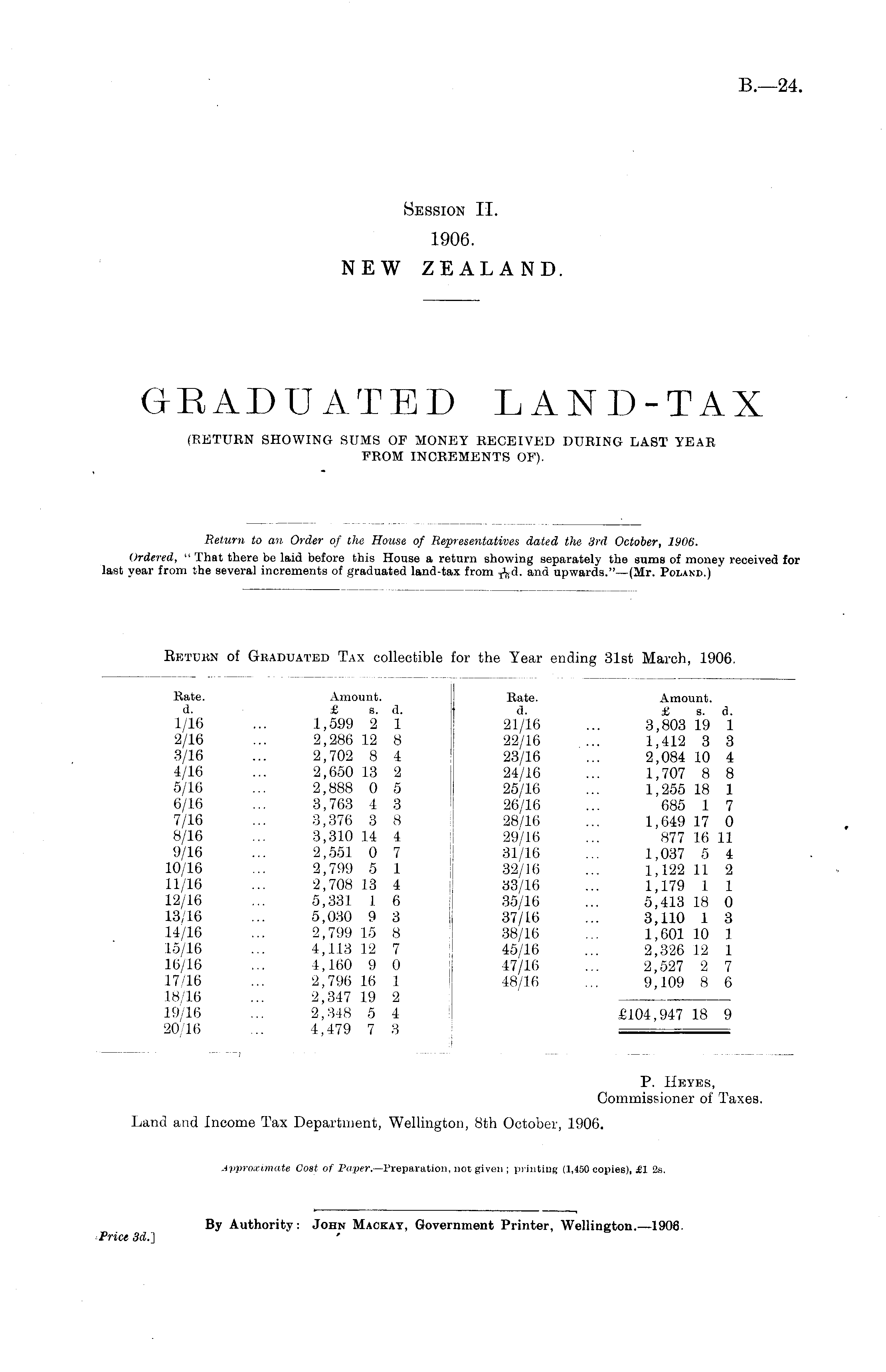 P. Hbyes, Commissioner of Taxes. Land and Income Tax Department, Wellington, Bth October, 1906. Approximate Cost of Paper. —Preparation, not given ; printing (1,450 copies), £1 2s.