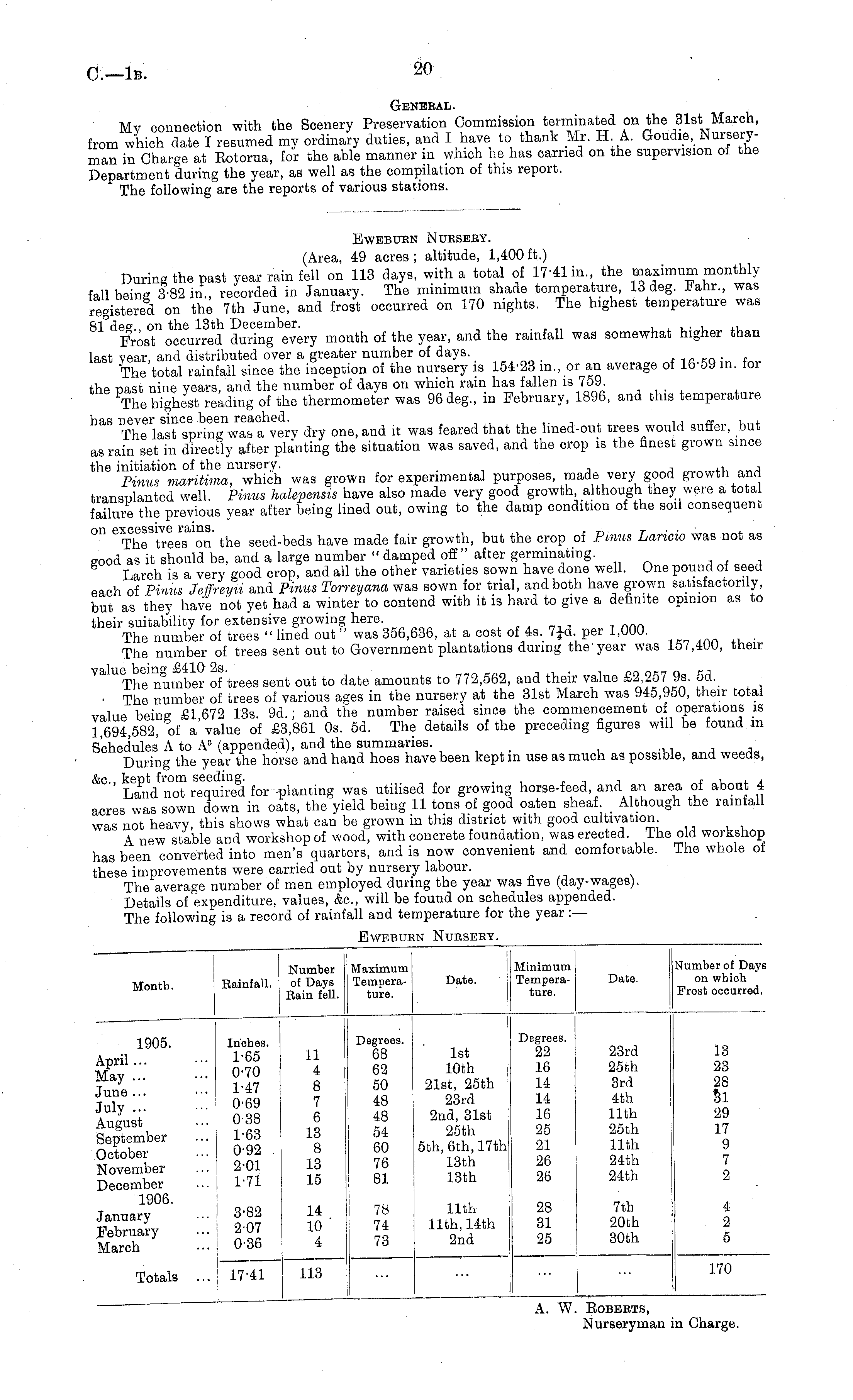 A. W. Roberts, Nurseryman in Charge.