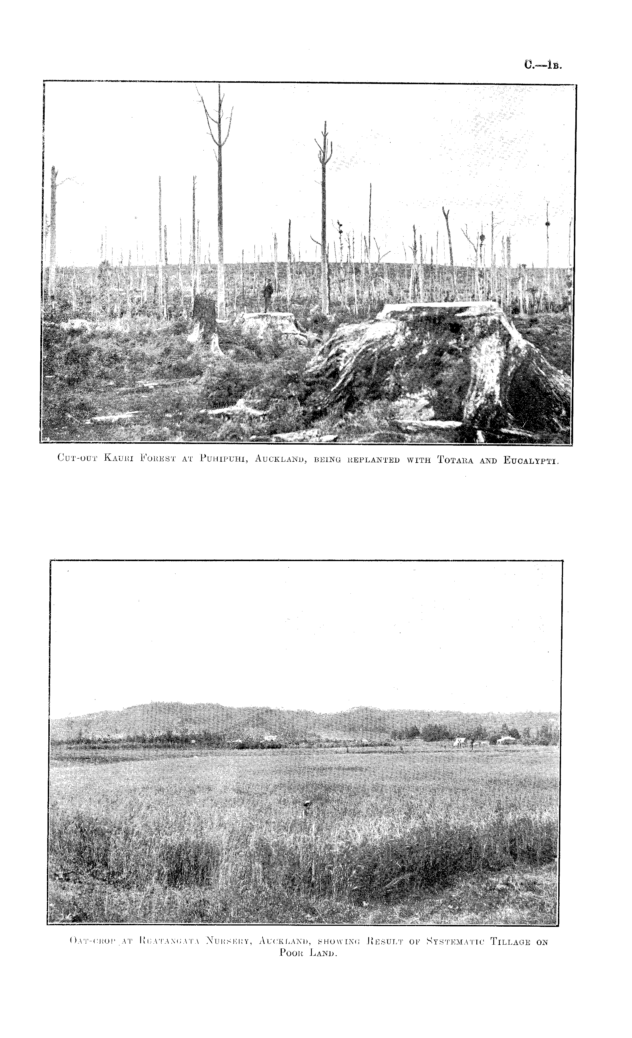 Cut-out Kauri Forest at Puhipuhi, Auckland, being replanted with Totara and Eucalypti.