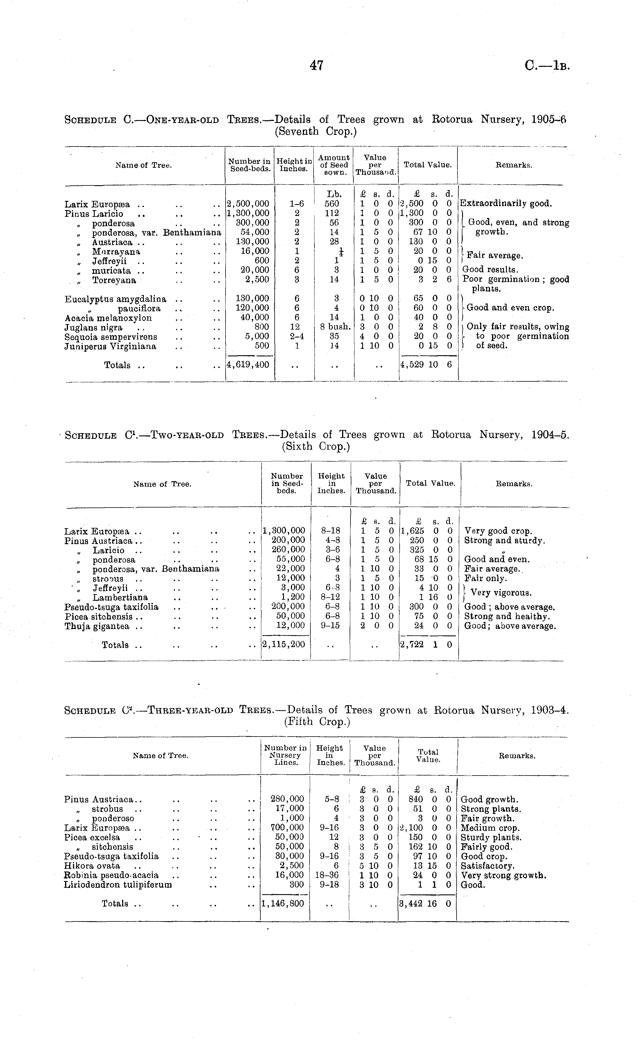 Schedule C.—One-year-old Trees.—Details of Trees grown at Rotorua Nursery, 1905-6 (Seventh Crop.)