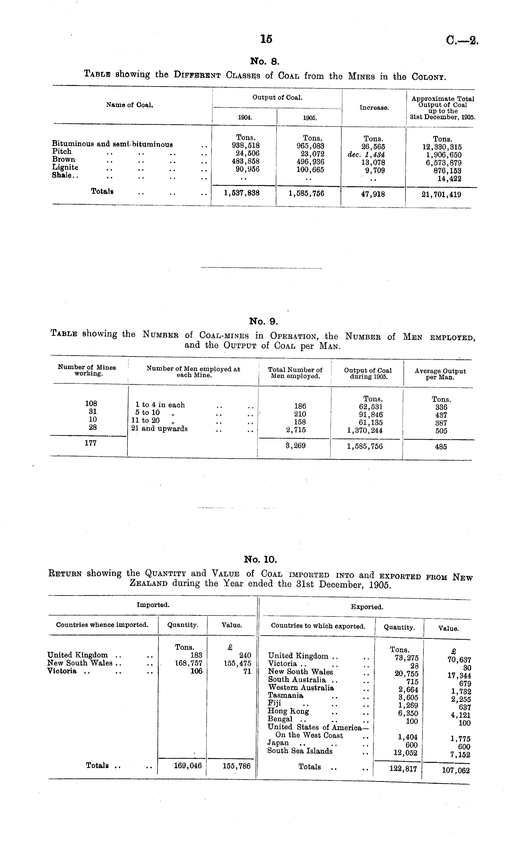 No. 10. Return showing the Quantity and Value of Coal imported into and exported from New Zealand during the Year ended the 31st December, 1905.