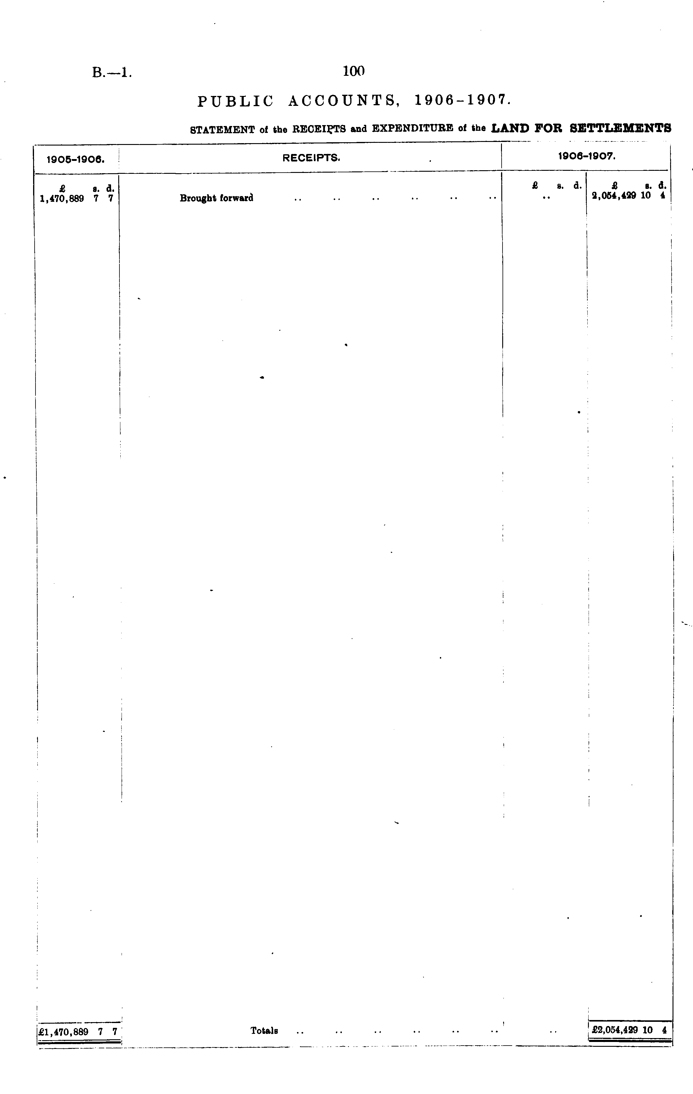 1905-1906. RECEIPTS. 1906-1907. £ a. d. 1,470,889 7 7 £ a. d. £ s. d. 2,054,429 10 4 1,41 ,70,889 9 7 7 Brought forward 2,054,429 10 i I I \ £ hl 470,88 39 7 7 . Totals ' £2,054,429 10 4 j£l,470,889 7 7