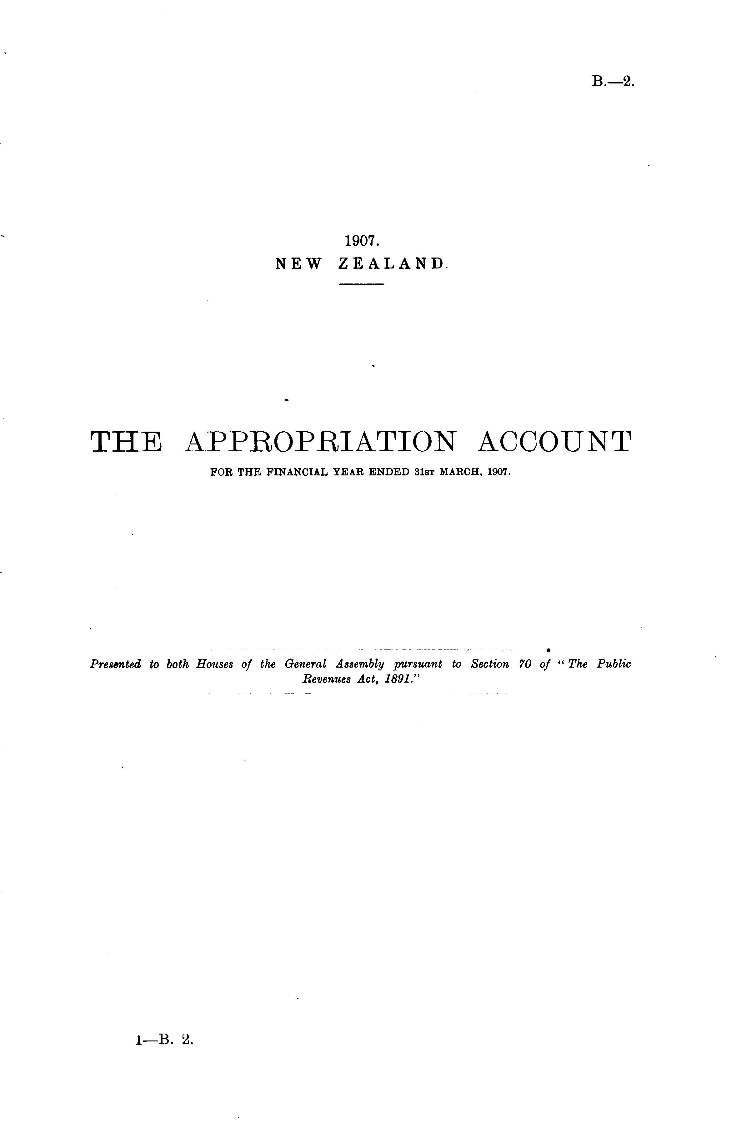 THE APPROPRIATION ACCOUNT FOR THE FINANCIAL YEAR ENDED 31st MARCH, 1907.