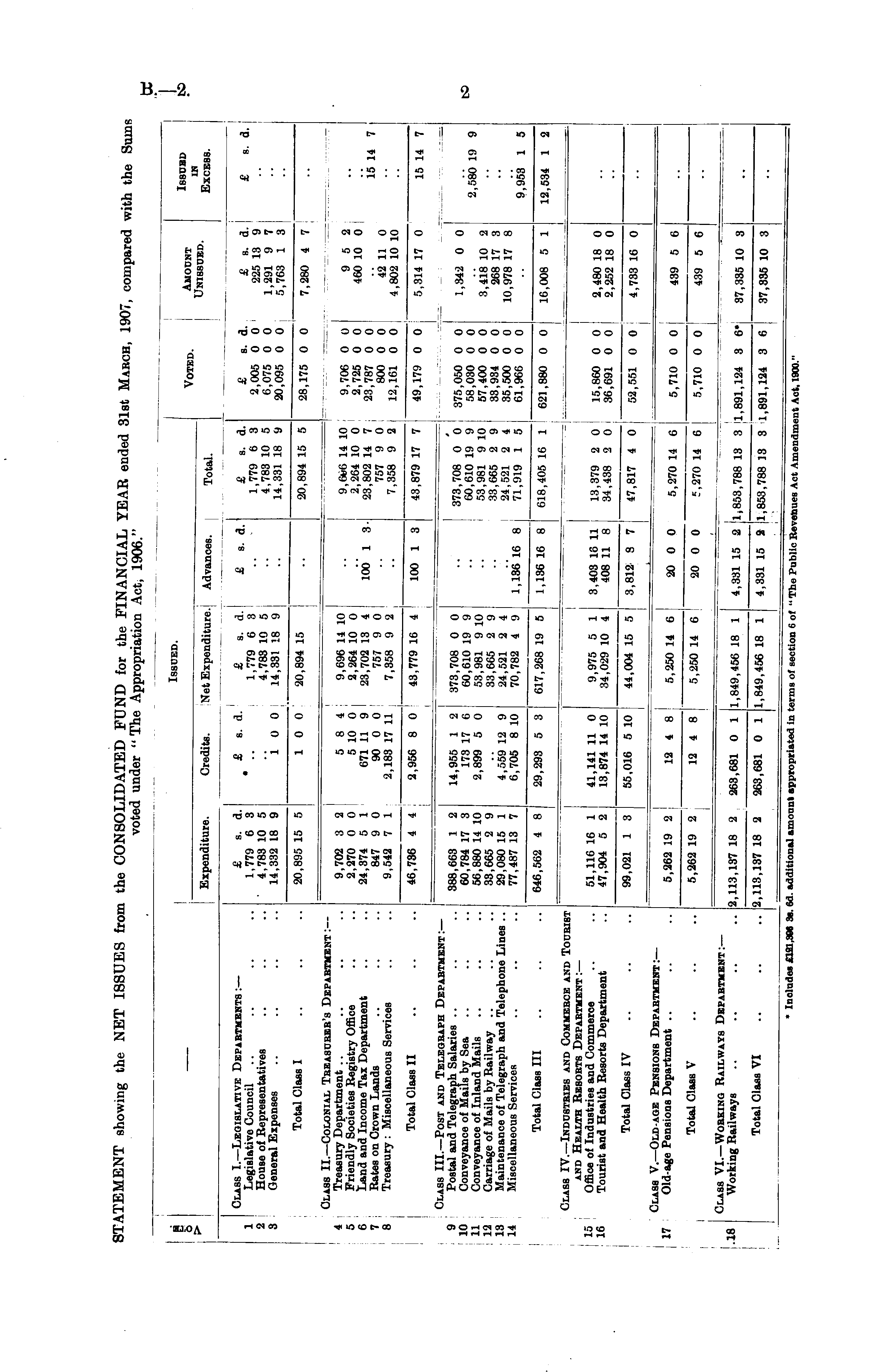 STATEMENT showing the NET ISSUES from the CONSOLIDATED FUND for the FINANCIAL YEAR ended 31st March, 1907, compared with the Sums voted under "The Appropriation Act, 1906."