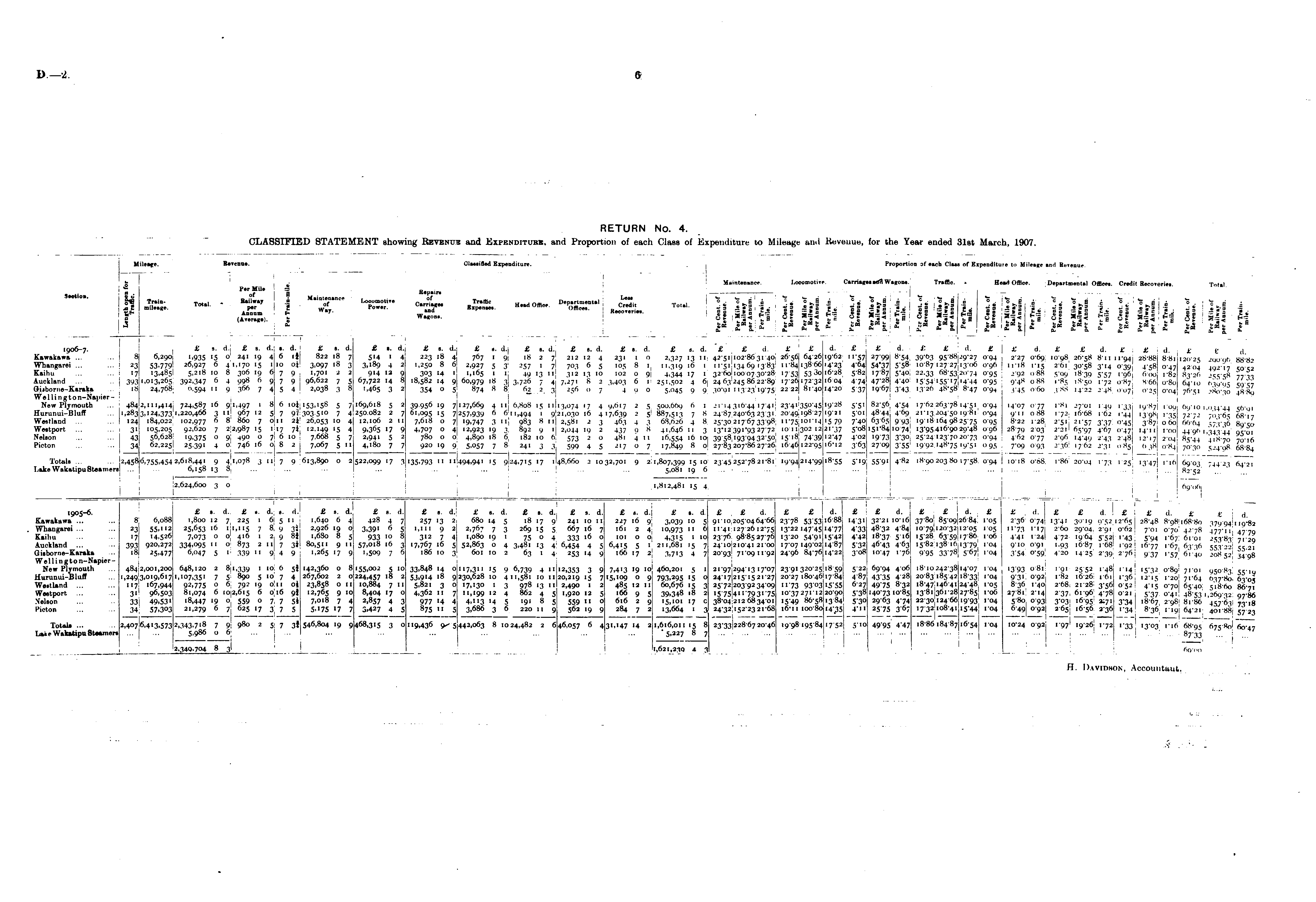RETURN No. 4. CLASSIFIED STATEMENT showing Revenue and Expenditure, and Proportion of each Class of Expenditure to Mileage and Revenue, for the Year ended 31st March, 1907.
