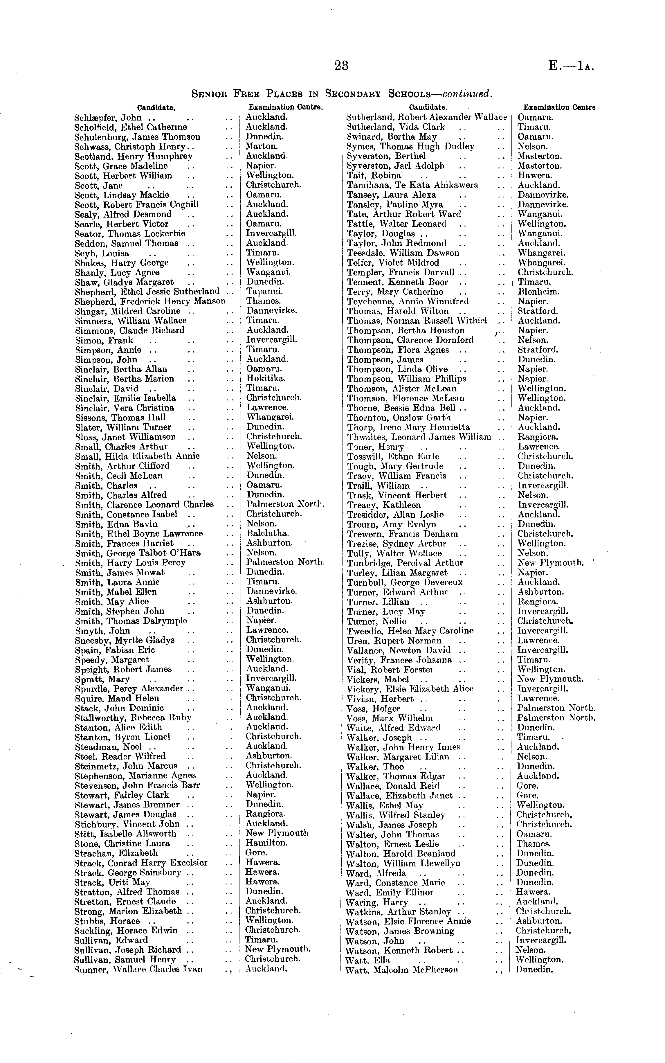 Candidate. Examination Centre. Schlaepfer, John .. .. . .■ I Auckland. Scholfield, Ethel Catherine .. Auckland. Schulenburg, James Thomson .. Dunedin. Schwass, Christoph Henry.. .. Marton. Scotland, Henry Humphrey .. Auckland. Scott, Grace Madeline .. .. j Napier. Scott, Herbert William .. .. j Wellington. Scott, Jane .. .. .. Christchurch. Scott, Lindsay Mackie .. .. Oamaru. Scott, Robert Francis Cog'hill .. Auckland. Scaly, Alfred Desmond .. .. Auckland. Searlo, Herbert Victor .. .. Oamaru. Seator, Thomas Lockerbie .. Invercargill. Seddon, Samuel Thomas .. .. Auckland. Seyb, Louisa .. .. .. Timaru. Shakes, Harry George .. Wellington. Shanly, Lucy Agnes .. .. Wanganui. Shaw, Gladys Margaret .. .. Dunedin. Shepherd, Ethel Jessie Sutherland .. Tapanui. Shepherd, Frederick Henry Manson Thames. Shugar, Mildred Caroline .. .. Dannevirke. Simmers, William Wallace .. Timaru. Simmons, Claude Richard . . Auckland. Simon, Frank . . .. .. Invercargill. Simpson, Annie .. .. .. Timaru. Simpson, John .. .. .. Auckland. Sinclair, Bertha Allan .. .. Oamaru. Sinclair, Bertha Marion .. .. Hokitika. Sinclair, David .. .. .. Timaru. Sinclair, Emilie Isabella .. .. Christchurch. Sinclair, Vera Christina .. .. Lawrence. Sissons, Thomas Hall .. .. Whangarei. Slater, William Turner .. .. Dunedin. Sloss, Janet Williamson .. . . Christchurch. Small, Charlos Arthur .. . . Wellington. Small, Hilda Elizabeth Annie .. Nelson. Smith, Arthur Clifford .. .. Wellington. Smith, Cecil McLean .. .. Dunedin. Smith, Charles .. .. .. Oamaru. Smith, Charles Alfred .. .. Dunedin. Smith, Clarence Leonard Charles . . Palmerston North. Smith, Constance Isabel .. Christchurch. Smith, Edna Bavin .. .. Nelson. Smith, Ethel Boyne Lawrence .. Balclutha. Smith, Frances Harriet .. .. j Ashburton. Smith, George Talbot O'Hara .. Nelson. Smith, Harry Louis Percy .. Palmerston North. Smith, James Mowat .. .. Dunedin. Smith, Laura Annie .. .. Timaru. Smith, Mabel Ellen .. Dannevirke. Smith, May Alice .. .. Ashburton. Smith, Stephen John .. .. Dunedin. Smith, Thomas Dalrymple . . Napier. Smyth, John .. .. Lawrence. Sneesby, Myrtle Gladys .. .. Christchurch. Spain, Fabian Eric .. .. Dunedin. Speedy, Margaret .. .. Wellington. Speight, Robert James .. .. Auckland. Spratt, Mary .. .. . . Invercargill. Spurdle, Percy Alexander .. .. Wanganui. Squire, Maud Helen .. Christchurch. Stack, John Dominic .. . . Auckland. Stallworthy, Rebecca Ruby .. Auckland. Stanton, Alice Edith .. . . Auckland. Stanton, Byron Lionel .. .. Christchurch. Steadman, Noel .. .. .. Auckland. Steel. Reader Wilfred .. .. Ashburton. Steinmetz, John Marcus .. . . j Christchurch. Stephenson, Marianne Agnes . . Auckland. Stevensen, John Francis Barr .. Wellington. Stewart, Fairley Clark .. . . Napier. Stewart, James Bremner . . . . Dunedin. Stewart, James Douglas . . Rangiora. Stichbury, Vincent John .. .. Auckland. Stitt, Isabelle Allsworth .. New Plymouth. Stone, Christine Laura • .. . . Hamilton. Strachan, Elizabeth .. Gore. Strack, Conrad Harry Excelsior .. Hawera. Strack, George Sainsbury .. .. Hawera. Strack, Uriti May .. .. Hawera. Stratton, Alfred Thomas .. .. Dunedin. Stretton, Ernest Claude .. .. Auckland. Strong, Marion Elizabeth .. .. Christchurch. Stubbs, Horace .. .. .. Wellington. Suckling, Horace Edwin .. . . Christchurch. Sullivan, Edward .. . . Timaru. Sullivan, Joseph Richard . . .. New Plymouth. Sullivan, Samuel Henry .. .. Christchurch. Sumner, Wallace Charles Tvan .. . Auckland.