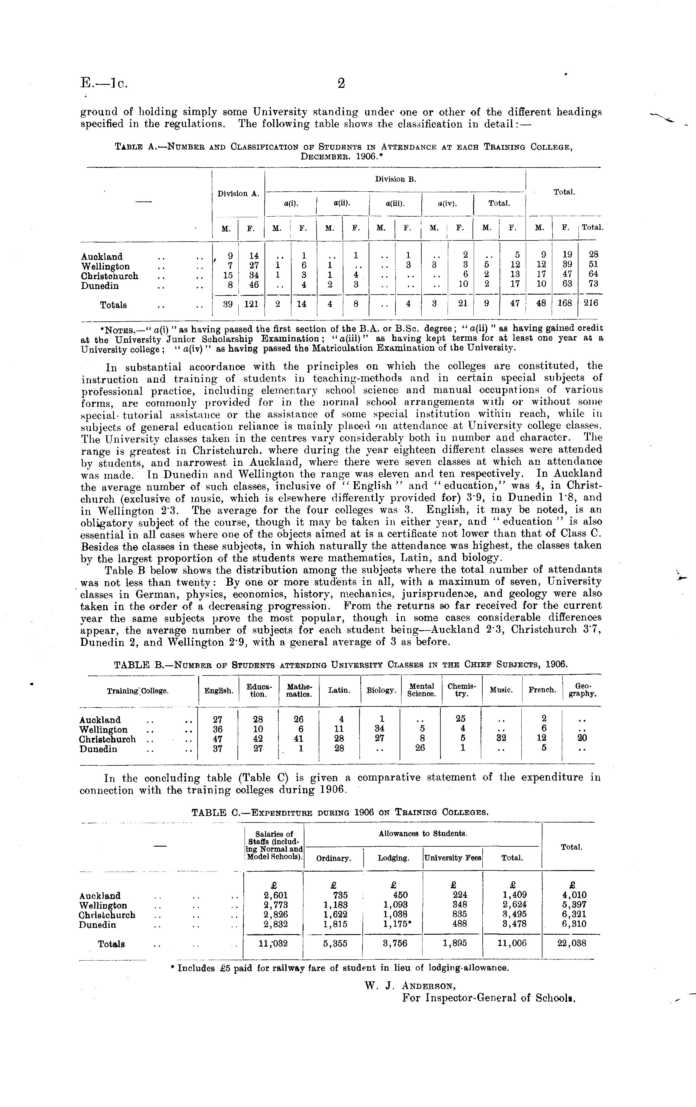 In the concluding table (Table C) is given a comparative statement of the expenditure in connection with the training colleges during 1906.