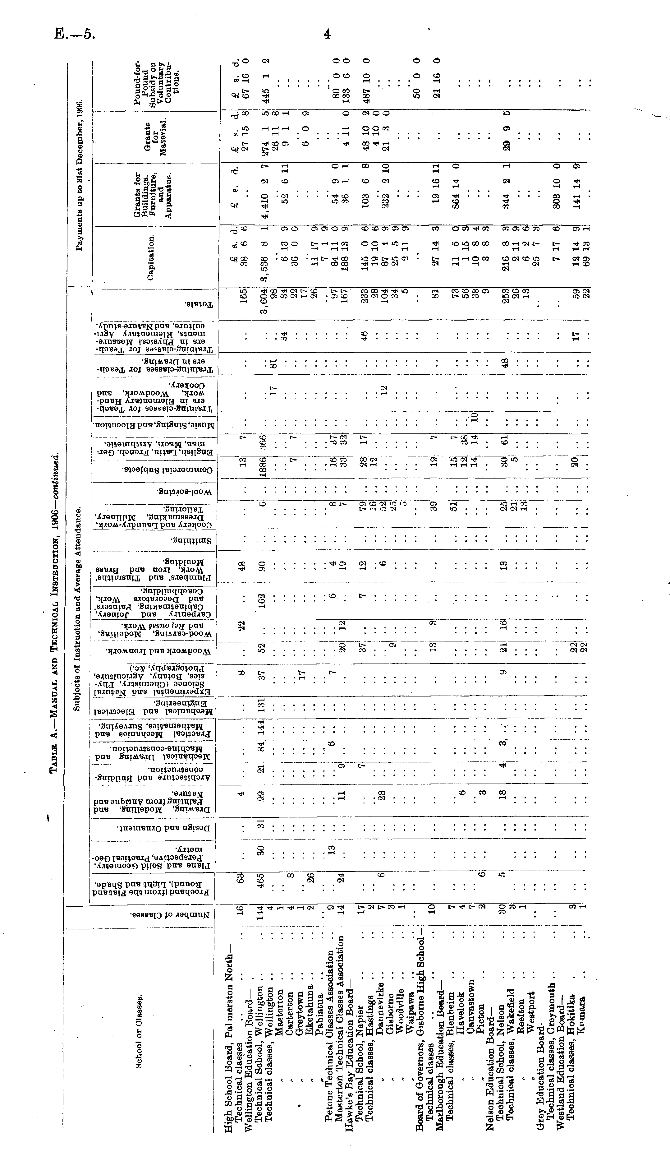 Table A.—Manual and Technical Instruction, 1906— continued.