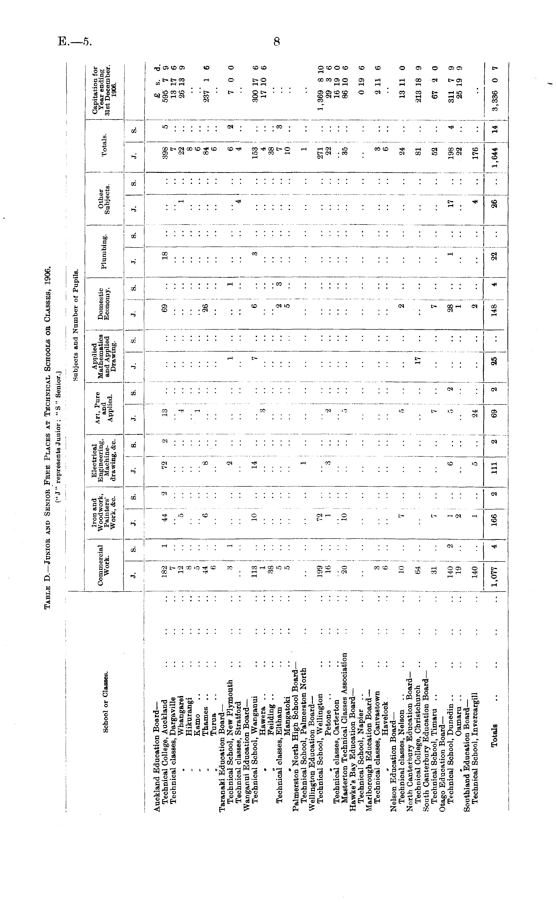 Subjects and Number of Pupi ils. School or Classes. Iron and Woodwork, Painters' Work, &c. Electrical Engineering, Machinedrawing, &c. Domestic Economy. Capitation for Year ending 31st December, 1906. Commercial Work. Plumbing. Other Subjects. Totals. J. s. J. S. J. I I S - J. s. J. s. J. S. J, s. J. S. J. s. I . I ! ! t 69 26 '.'. 18 1 Auckland Education Board — Technical College, Auckland Technical classes, Dargaville Wbangarei Hikurangi Kamo Thames .. „ Turua Taranaki Education BoardTechnical School, New Plymouth Technical classes, Stratford Wacganui Education Board — Technical School, Wanganui . Hawera Feilding Technical classes, Eltham „ Mangatoki Palmerston North High School Board — Technical School, Palmerston North Wellington Education Board — Technical School, Wellington „ Petone Technical olasses, Carterton Masterton Technical Classes Association Hawke's Bay Education Board — Technical School, Napier .. Marlborough Education Board — Technical classes, Canvastown „ Havelock Nelson Education Board — Technical classes, Nelson North Canterbury Education Board — Technical College, Christchurch South Canterbury Education Board — Technical School, Timaru Otago Education Board — Technical School, Dunedin .. , Oamaru Southland Education Board — Technical School, Invercargill 182 7 12 i 6 3 J 38 5 199 ; 16 1 1 44 -2 5 •■ fi :: .. .. 10 .. •• •■ .. .. 72 1 .. 72 2 "8 " ■I .. 14 .. i .. "a " 13 j " 4 i " 3 ! 5 I 1 7 •• I 1 I I 6 .. 2 3 5 .. 3 • * i 4 I 398 22 8 6 84 6 6 153 4 38 7 10 1 271 22 5 2 3 £ s. d. 595 7 9 13 17 6 26 13 9 237 1 6 7 0 0 300 17 6 17 10 6 1,369 8 10 29 3 6 16 19 0 86 10 6 •• .. • • I " 20 lo :: • • I 35 ' ' 0 19 6 3 6 .. j ■• i 3 6 2 11 6 ■■ 10 7 .. .. 5 9 24 13 11 0 64 ' * 17 ■• .. 81 213 18 9 31 140 i 19 2 7 2 .. .. .. .. 6 .. 7 ! U I ■■ 2 7 .. 28 .. 1 .. 2 .. ..M 17 J 52 198 22 4 67 2 0 311 7 9 25 19 9 "• 140 ! 1 I .. 166 2 5 .. 24 176 Totals 1,077 4 4 111 2 < 69 I 2 25 148 4 2 2 " 2 2 " -- — 26: 26: .. 1,644 14 3,336 0 7 2 69 25 I I I 1