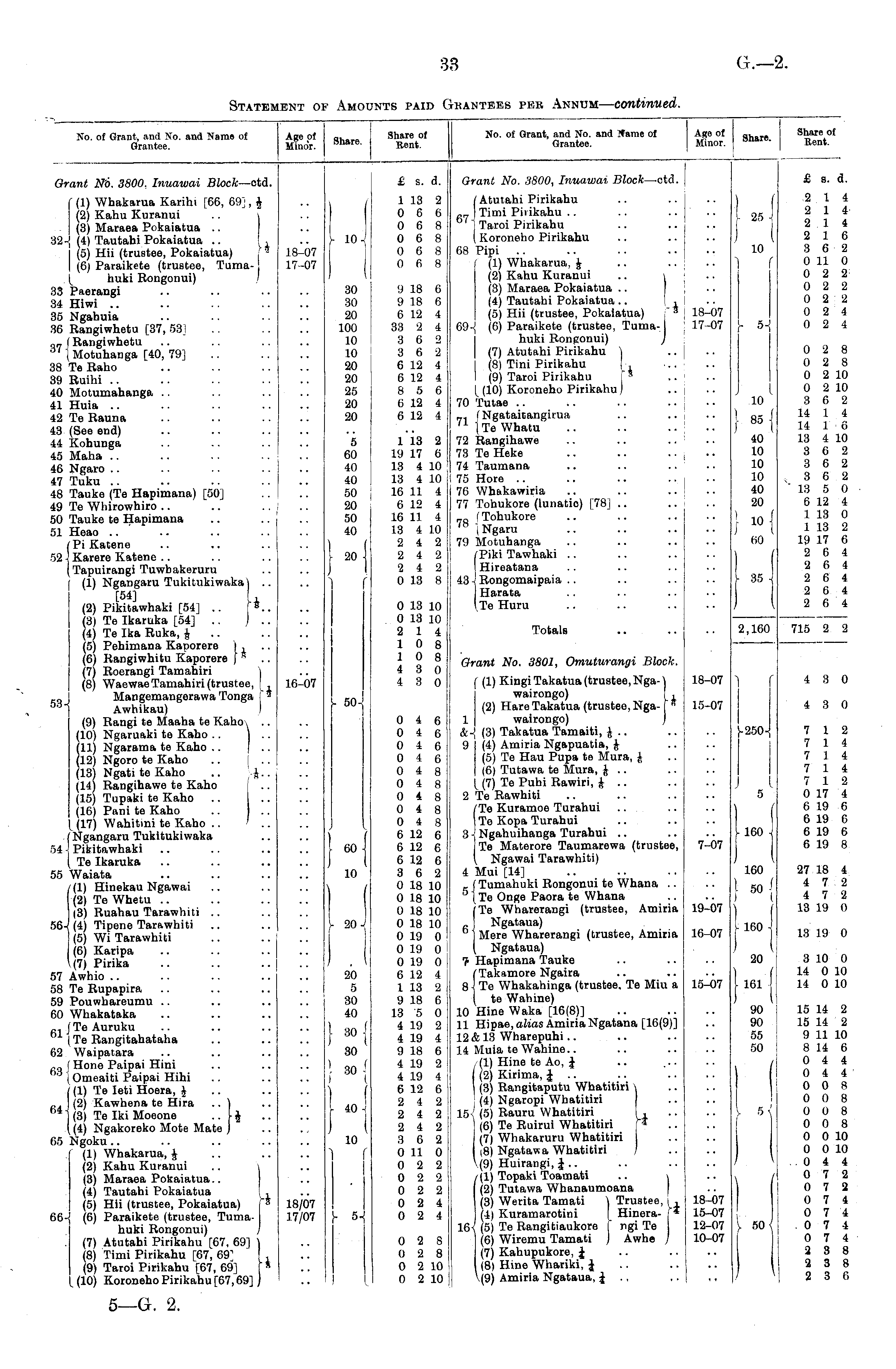 No. of Grant, and No. ant Grantee. Fame ot Age of Minor. ihare oi Itent. Share. Grant No. 3800, Inuawai Block— otd. £ s. d. 67 68 69 (Atutahi Pirikahu fi7 ) Timi Pirikahu 'j Taroi Pirikahu I Koroneho Pirikahu 68 Pipi I (1) Whakarua, J (2) Kahu Kuranui (3) Maraea Pokaiatua .. (4) Tautahi Pokaiatua .. , (5) Hii (trustee, Pokaiatua) |* 69«j (6) Paraikete (trustee, Tumahuki Rongonui) J I (7) Atutahi Pirikahu \ (8) Tini Pirikahu [, I (9) Taroi Pirikahu [* 1 (10) Koroneho Pirikahu ) 70 Tutae .. 71 f Ngataitangirua n 1 Te Whatu 72 Rangihawe 73 Te Heke 74 Taumana 75 Hore .. 76 Whakawiria 77 Tohukore (lunatio) [78] .. _ Q f Tohukore 7 (Ngaru 79 Motuhanga fPiki Tawhaki I Hireatana 43 ■ Rongomaipaia Harata Te Huru 18-07 17-07 10 ■25 10 2 14 2 14 2 14 2 16 3 6 2 0 11 0 0 2 2 0 2 2 0 2 2 0 2 4 0 2 4 0 2 8 0 2 8 0 2 10 0 2 10 3 6 2 14 1 4 14 16 13 4 10 3 6 2 3 6 2 3 6 2 13 5 0 6 12 4 1 13 0 1 13 2 19 17 6 2 6 4 2 6 4 2 6 4 2 6 4 2 6 4 }85{ I i 40 10 10 10 40 20 ;io{ H0 • 35 - Totals 2,160 715 2 3 Grant No. 3801, Omuturangi Block. { (1) KingiTakatua (trustee, Ngawairongo) , (2) Hare Takatua (trustee, Nga- s 1 wairongo) &-| (3) Takatua Tamaiti, J .. 9 (4) Amiria Ngapuatia, £ (5) Te Hau Pupa te Mura, £ (6) Tutawa te Mura, £ .. [ (7) Te Puhi Rawiri, J .. 2 Te Rawhiti /Te Kuramoe Turahui Te Kopa Turahui 3 - Ngahuihanga Turahui Te Materore Taumarewa (trustee, \ Ngawai Tarawhiti) 4 Mui [14] _ (Tumahuki Rongonui te Whana .. { Te Onge Paora te Whana Wharerangi (trustee, Amiria Ngataua) I Mere Wharerangi (trustee, Amiria ( Ngataua) 7- Hapimana Tauke (Takamore Ngaira 8 J Te Whakahinga (trustee. Te Miu a I te Wahine) 10 Hine Waka [16(8)] 11 Hipae.aZias Amiria Ngatana [16(9)] 12 & 13 Wharepuhi.. 14 Muia te Wahine.. ,(1) Hine te Ao, J (2) Kirima, J .. (3) Rangitaputu Whatitiri \ (4) Ngaropi Whatitiri 15-;' (5) Rauru Whatitiri I , (6) Te Ruirui Whatitiri r* (7) Whakaruru Whatitiri 18) Ngatawa Whatitiri / (9) Huirangi, J .. (1) Topaki Toamati .. i (2) Tutawa Whanaumoana (8) Werita Tamati \ Trustee, I , (4) Kuramarotini | Hinera- | * 16< (5) Te Rangitiaukore I ngi Te (6) Wiremu Tamati ) Awhe / (7) Kahupukore, J (8) Hine Whariki, J \(9) Amiria Ngataua, J ■. 4 3 0 18-07 15-07 4 3 0 1 &■ 9 250 7 12 7 1 4 7 14 7 14 7 12 0 17 4 6 19 6 6 19 6 6 19 6 6 19 8 5 t 7-07 160 -I { 160 27 18 4 4 7 2 4 7 2 13 19 0 4 r> 19-07 .{ 160 j 16-07 13 19 0 7 15-07 20 161 3 10 0 14 0 10 14 0 10 8 10 11 12 14 15 90 90 55 50 5 15 14 2 15 14 2 9 11 10 8 14 6 0 4 4 0 4 4 0 0 8 0 0 8 0 0 8 0 0 8 0 0 10 0 0 10 0 4 4 0 7 2 0 7 2 0 7 4 0 7 4 0 7 4 0 7 4 2 3 8 2 3 8 2 3 6 18-07 15-07 12-07 10-07 1C, 50