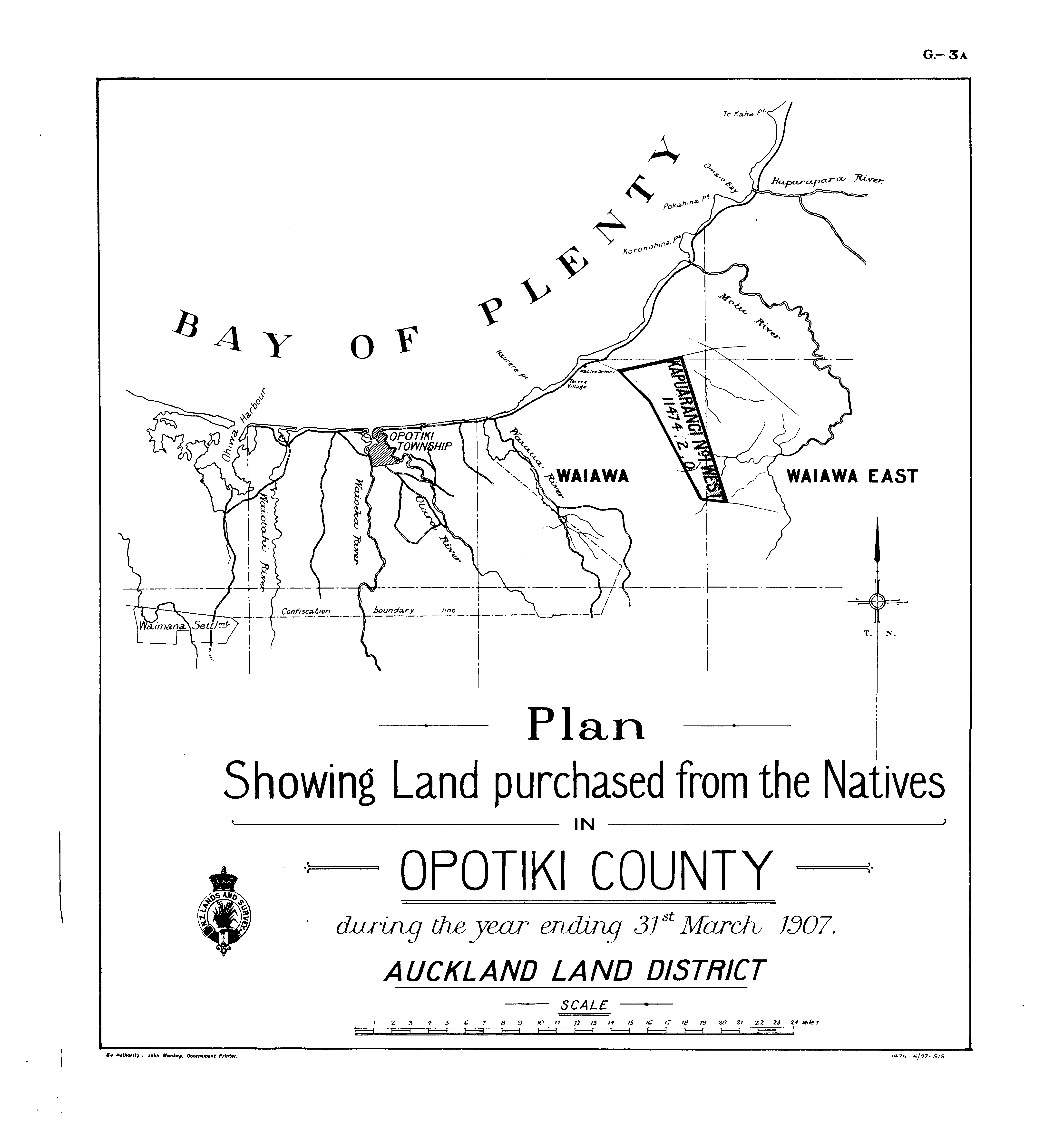 Plan Showing Land purchased from the Natives IN OPOTIKI COUNTY during the year ending 31 st March, 1907. AUCKLAND LAND DISTRICT