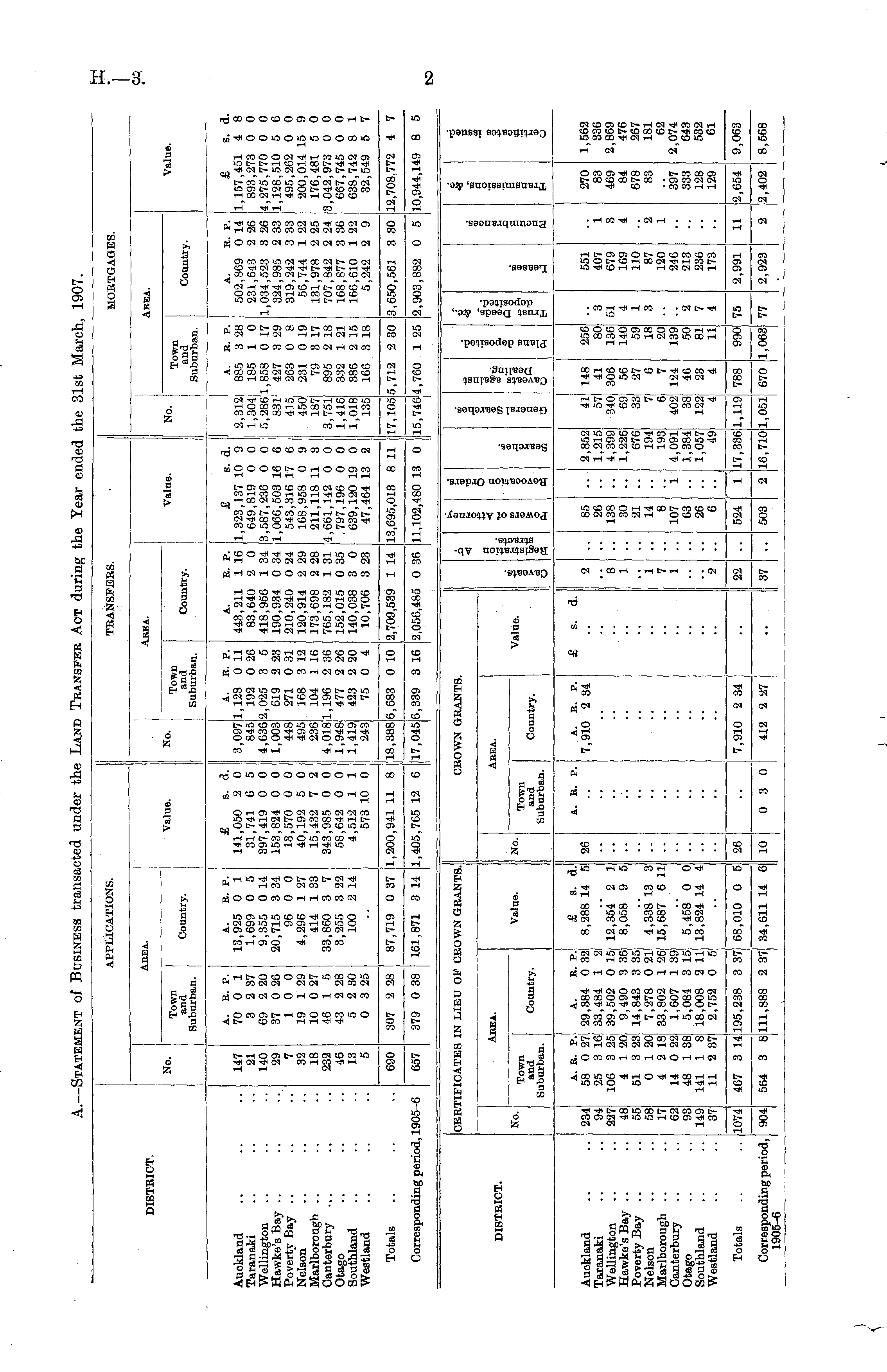 A.—Statement of Business transacted under the Land Transfer Act during the Year ended the 31st March, 1907.